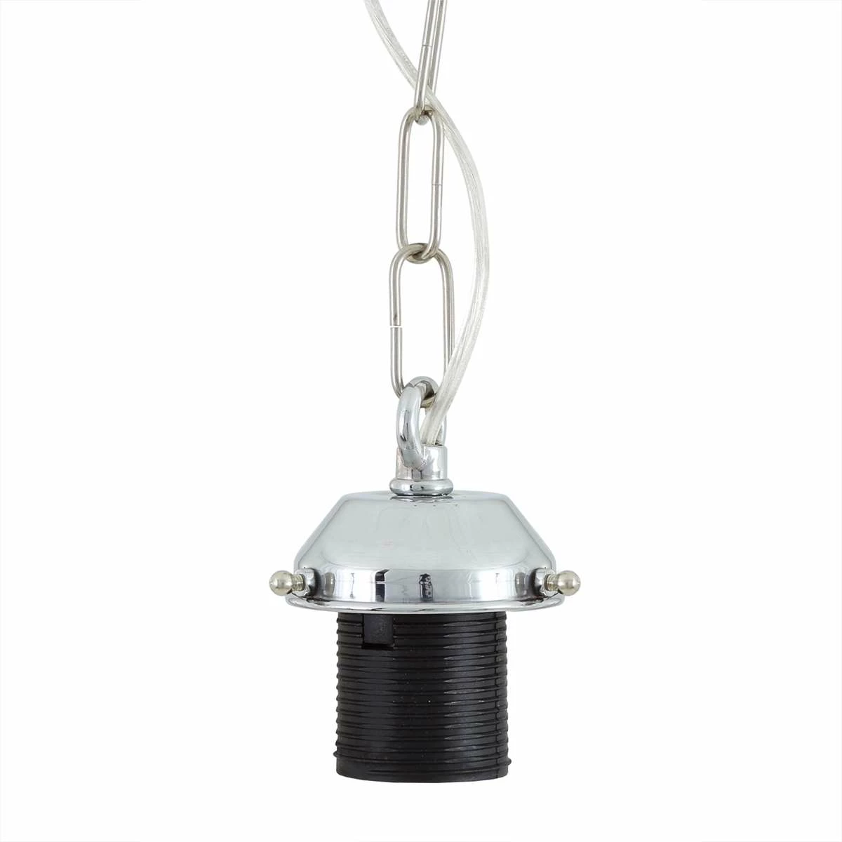 This is a complete pendant suspension with 6cm gallery for holding a glass lamp shade. This gallery suspension system includes a matching ceiling rose, cord grip, lighting chain, decorative cable, lamp holder and gallery. The chain and cable can be ordered in 1 metre, 2 metre or 3 metres lengths (contact us directly for anything longer than this). Colour finishes available include polished chrome (as shown on the gallery and chain image), polished brass, satin chrome, satin brass, antique silver and antique brass.