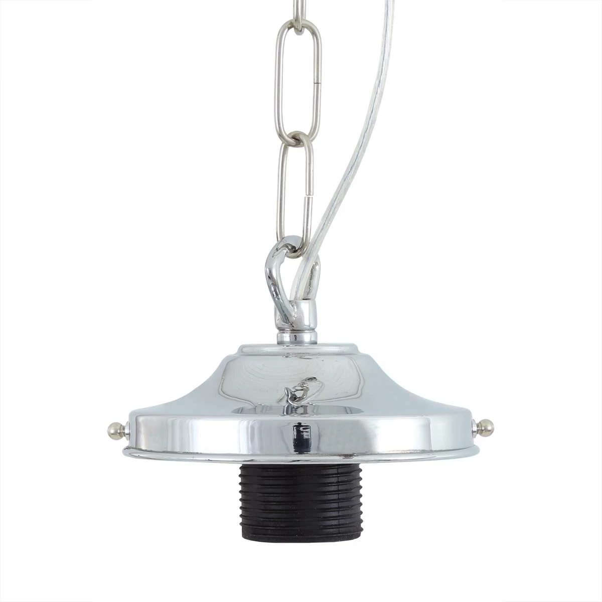 This is a complete pendant suspension with 11cm gallery for holding a glass lamp shade. This gallery suspension system includes a matching ceiling rose, cord grip, lighting chain, decorative cable, lamp holder and gallery. The chain and cable can be ordered in 1 metre, 2 metre or 3 metres lengths (contact us directly for anything longer than this). Colour finishes available include polished chrome (as shown on the gallery and chain image), polished brass, satin chrome, satin brass, antique silver and antique brass.