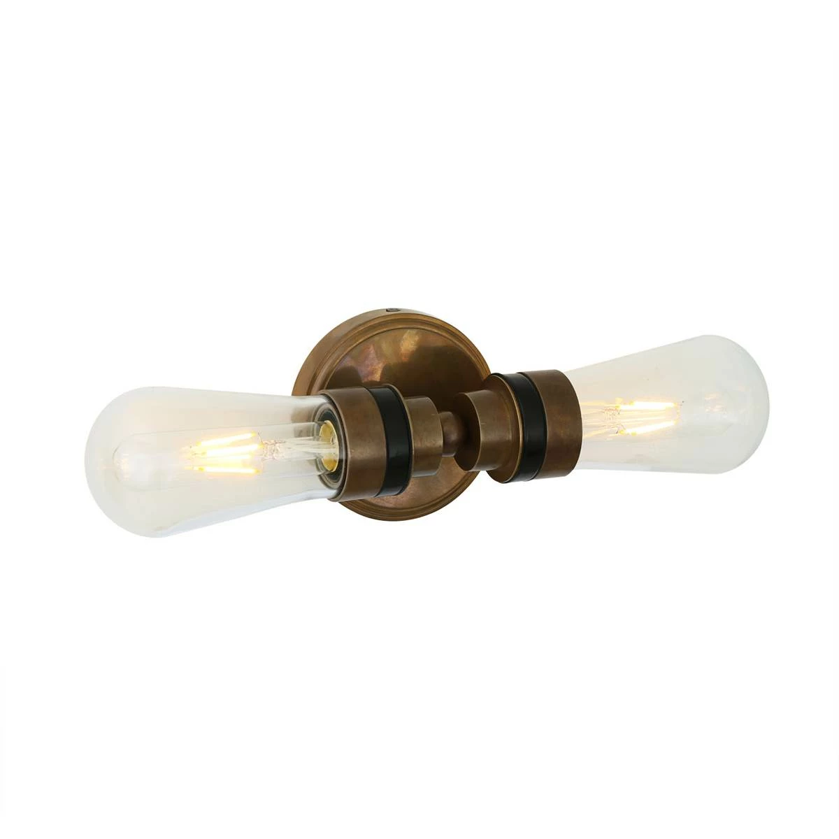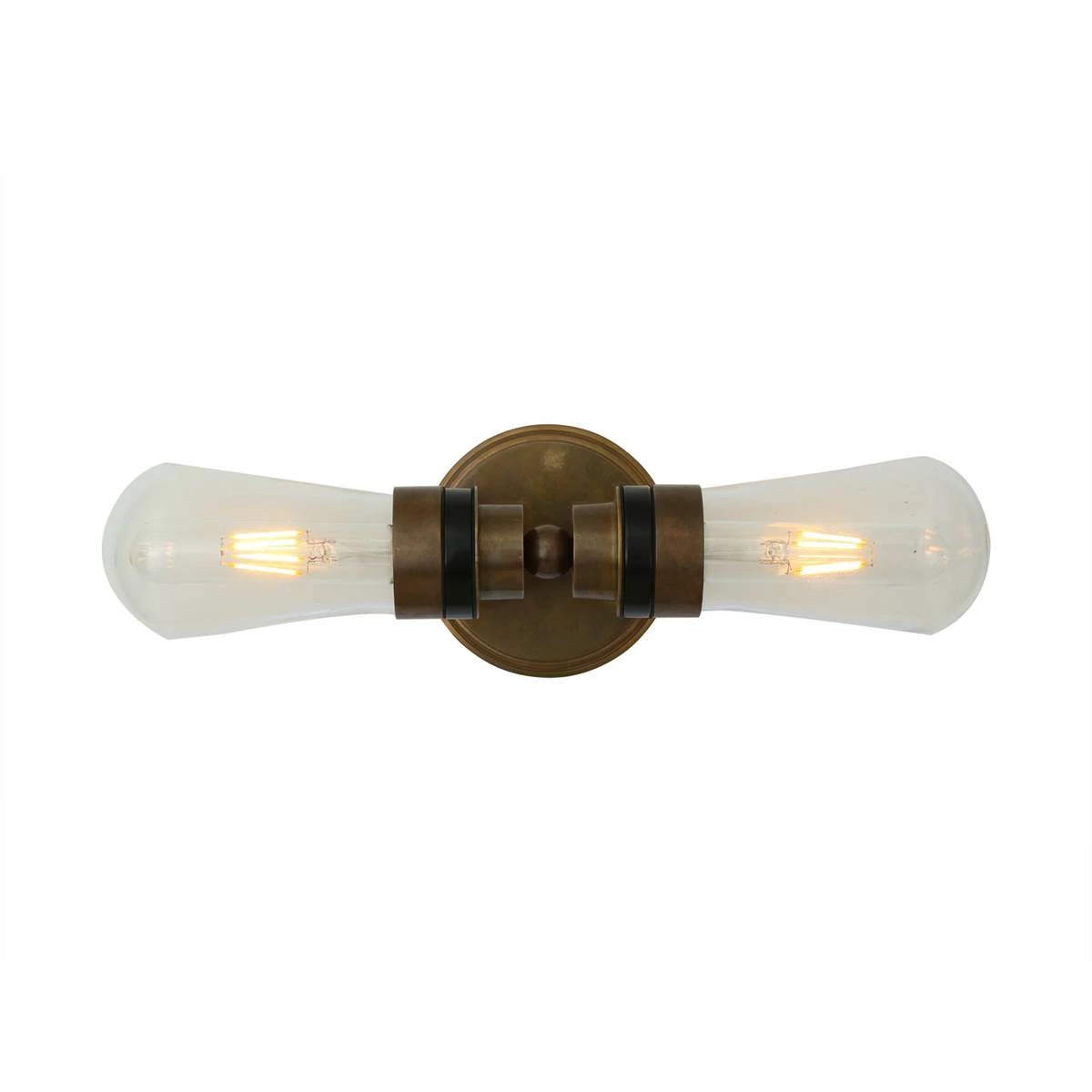 Elegant and sophisticated, the Ara wall Light creates an ambiance that sets a welcoming tone for any classic or even industrial interior. This symmetrical wall fixture provides an elegantly simple lighting source perfect for outdoor garden or bathroom lighting. Designed in the shape of a tear drop, this contemporary wall light includes two clear glass shades to illuminate any space without causing glare. It has an IP65 rating, which means it has a strong water resistance and is ideal for both outdoors and indoor use. This wall light looks great when lit with a warm bulb for soft lighting. Bulbs are sold separately.
