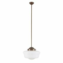 The Avon pendant is a medium-sized brass dome pendant. The inside surface of its metal shade is satin brass while the outer surface is powder-coated matte black or white.