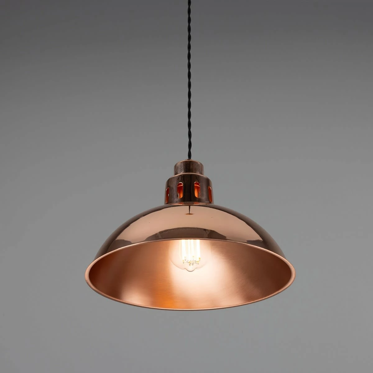 With a sleek and vivacious design, the Berlin Vintage Copper Pendant Light adds a visual interest to any room. Hang it over a reading chair, in the foyer, or paired with another over your dinner table. Displaying a classic modern copper shade, this vintage pendant light creates the right ambiance for any occasion and is sure to add a little urban edge into the mix. Suitable for vintage and contemporary interiors, this copper pendant light looks great when teamed with an Edison-style Bulb for a softer and inviting illumination. Bulbs are sold separately.