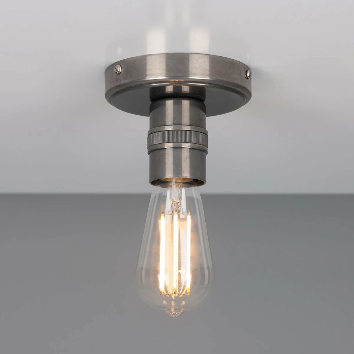 The Bexter Vintage Flush Ceiling Light will illuminate any space with eye-catching brilliance. Designed to showcase the warmth of Edison-style filament bulbs, this vintage ceiling light adds interest to entryways, kitchens, and dining rooms. Creativity and function are combined with a clever sense of design. With an exposed light bulb, this vintage flush ceiling light will provide a wide illumination even in small areas. Suitable for any minimalist or industrial interiors, this ceiling light fixture looks great when teamed with an Edison-style filament bulb to enhance an industrial atmosphere. Bulbs are sold separately.
