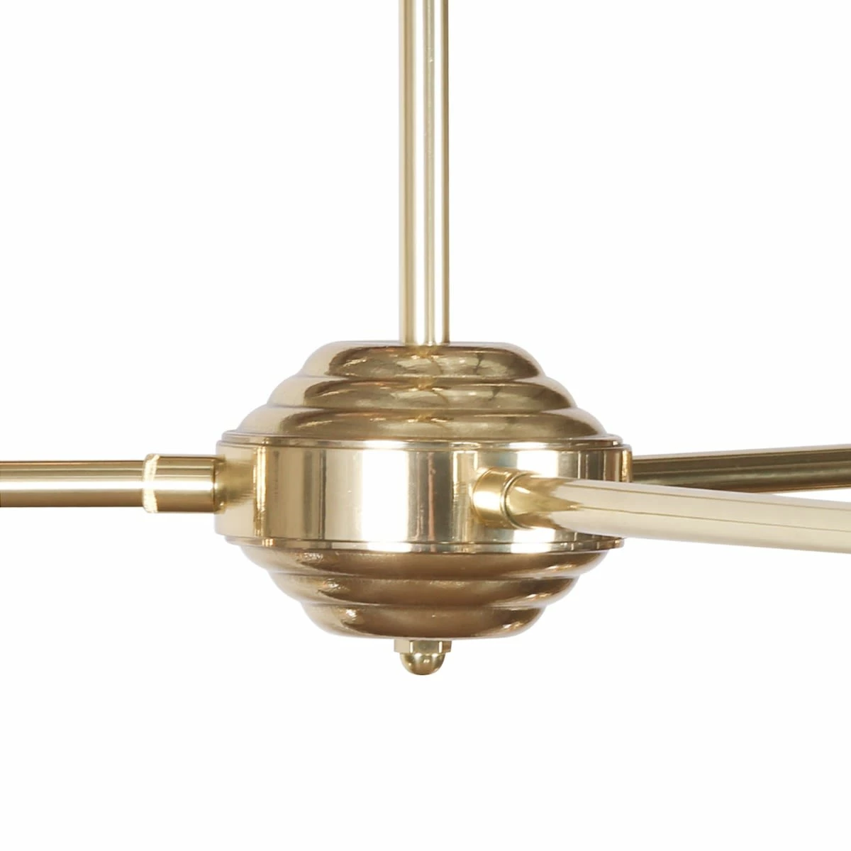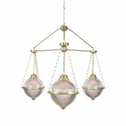 The Blaenau three-arm Holophane chandelier is available in four standard colours; antique brass, antique silver, polished brass and satin brass. The drop height for this chandelier is one metre as standard, although longer lengths can be ordered. Bulbs are sold separately.