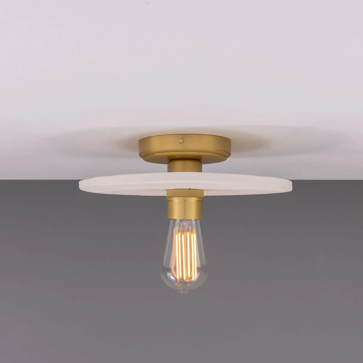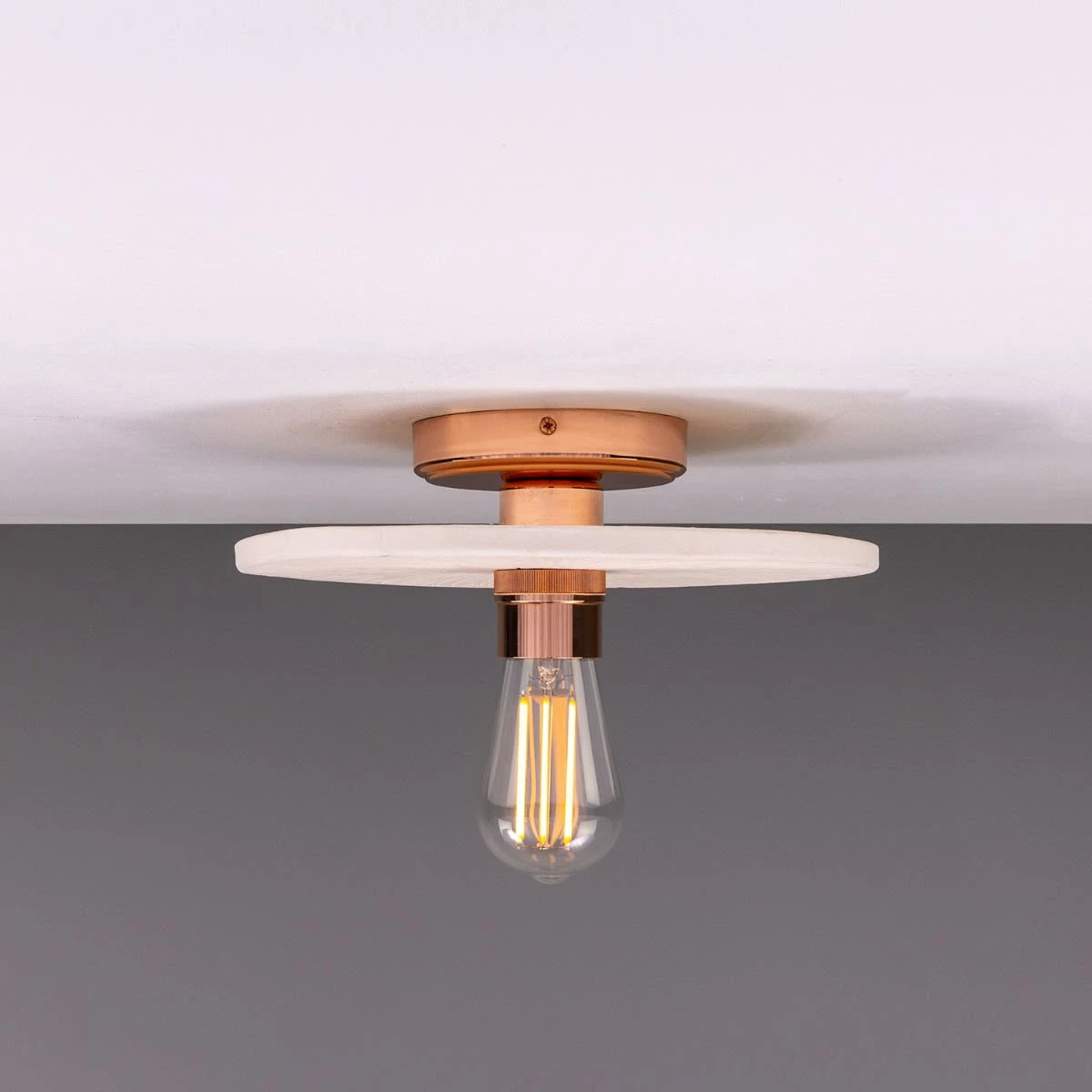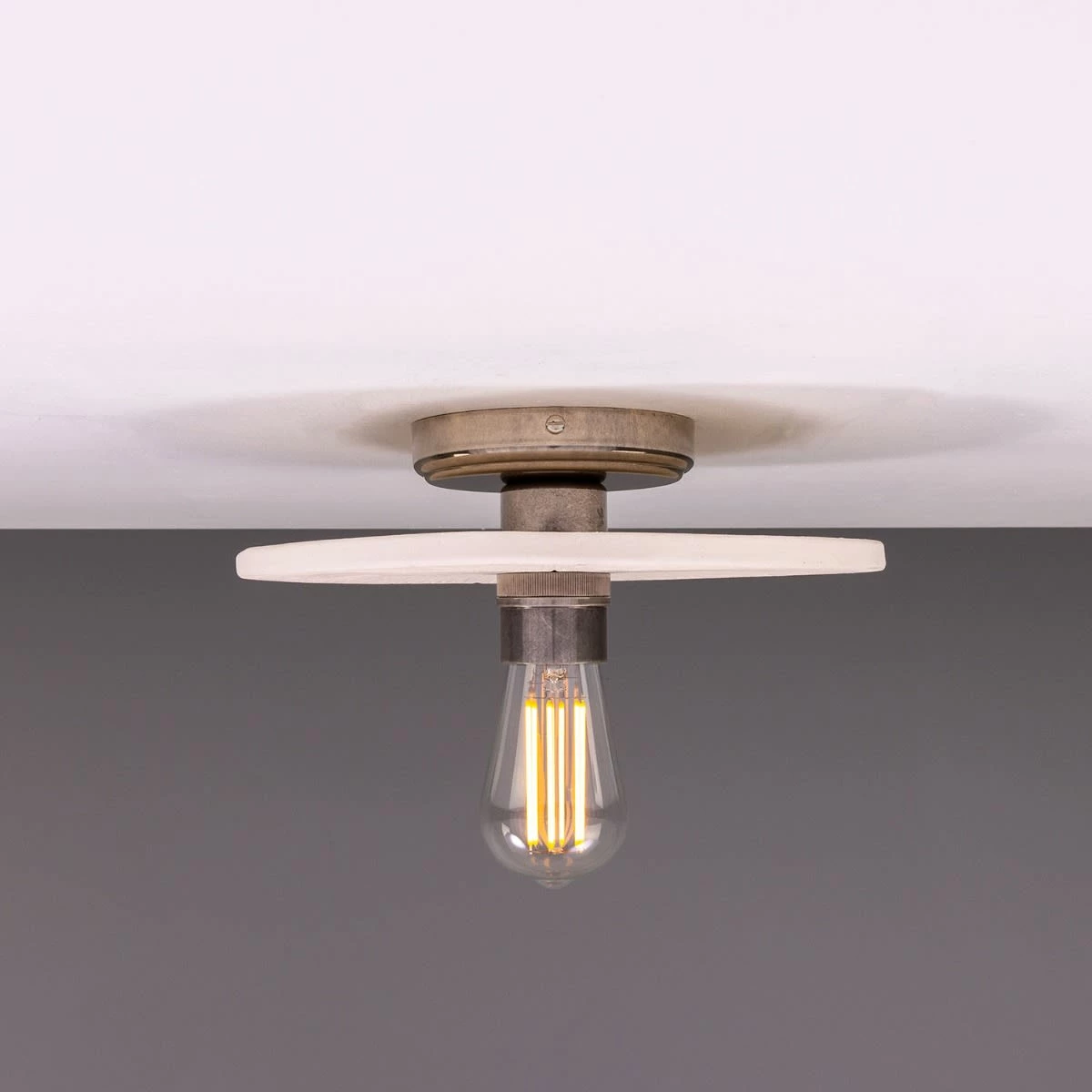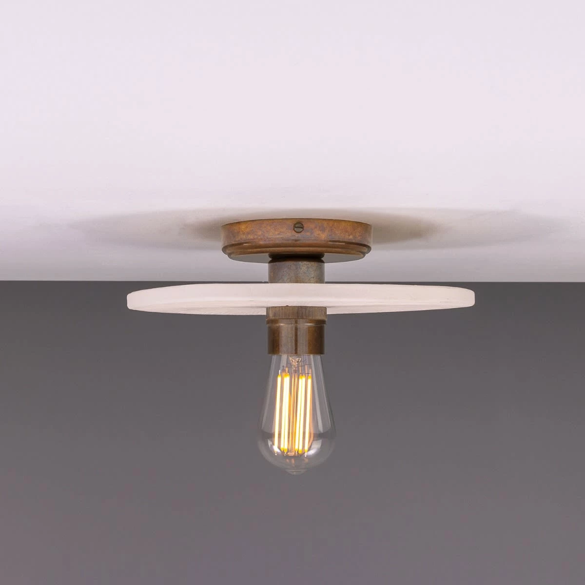 Elegant in its design, the Bog Oak ceramic ceiling light features a handcrafted matte white ceramic disc supported by a brass lamp holder and ceiling rose. Inspired by the ancient bog oak found in Ireland’s peat bogs, the Bog Oak ceiling light reflects its organic origins.