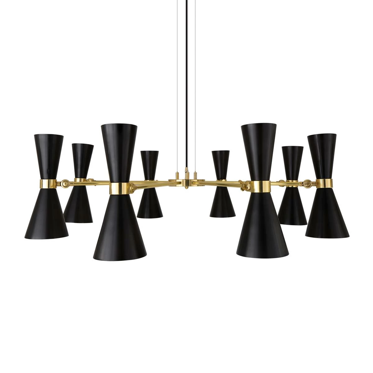 Featuring a sophisticated design, the Cairo Chandelier melds a mid-century modern style with a futuristic twist. This ceiling fixture will bring presence and functionality as a great billiard light, but it also offers a new take on kitchen island or dining table lighting. With its ultra-modern silhouette, this contemporary chandelier exemplifies the bold, contemporary aesthetic with a series of eight spun shades that will light up any contemporary setting. This eight-light chandelier is suitable for any minimalist or industrial interiors. Bulbs are sold separately.