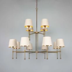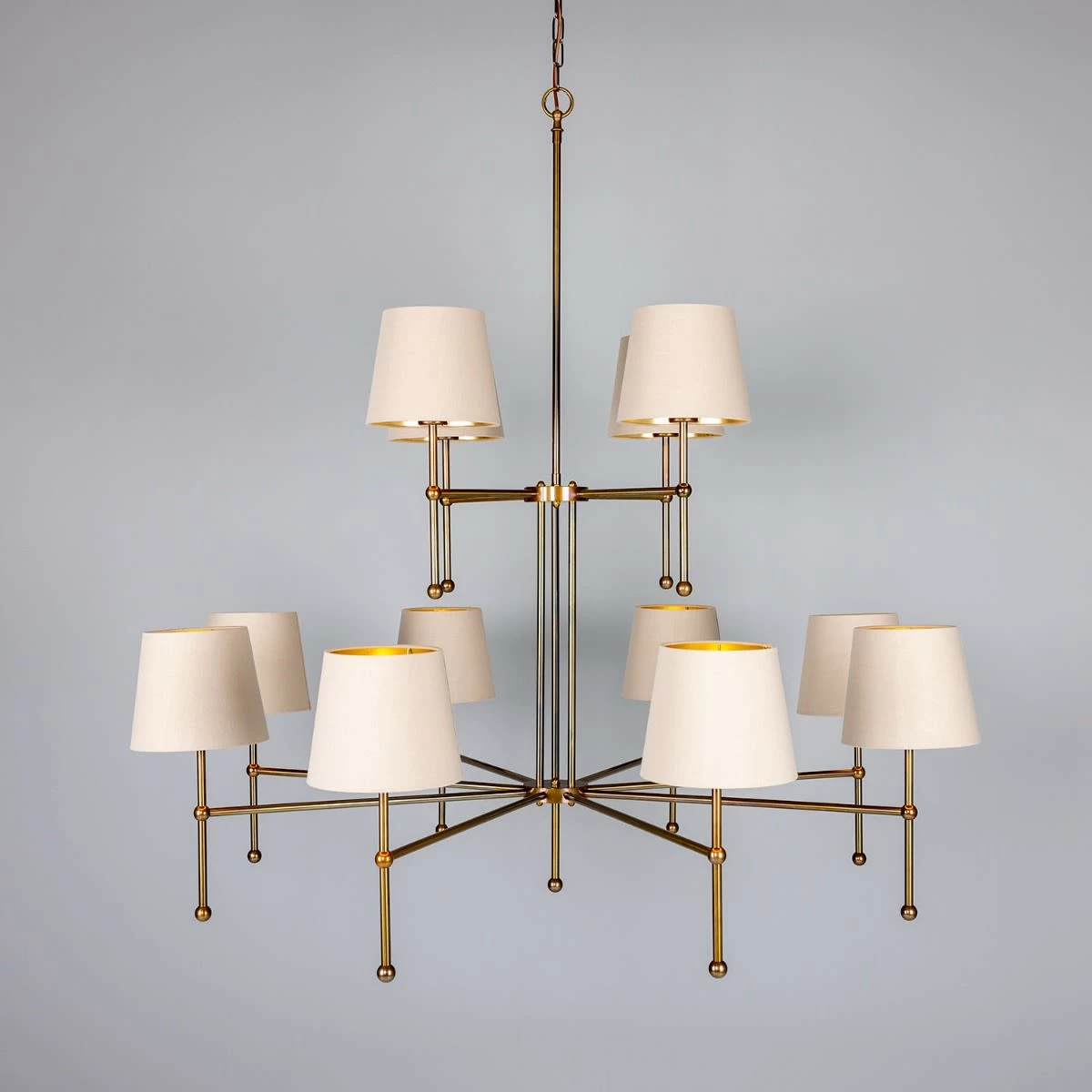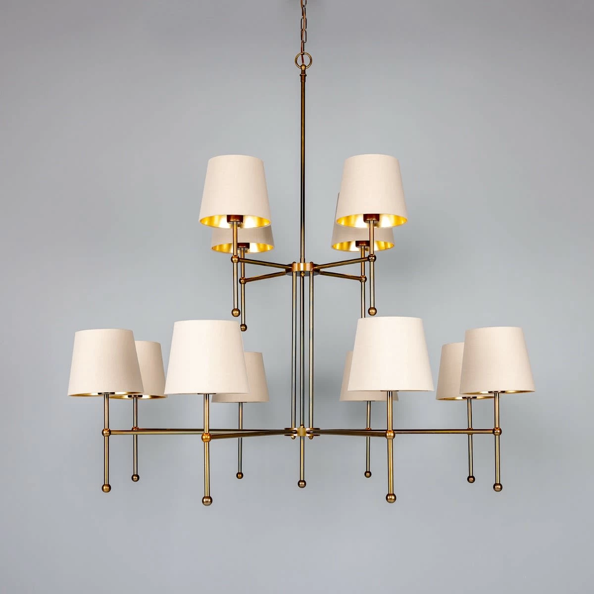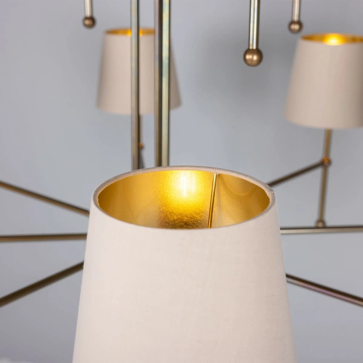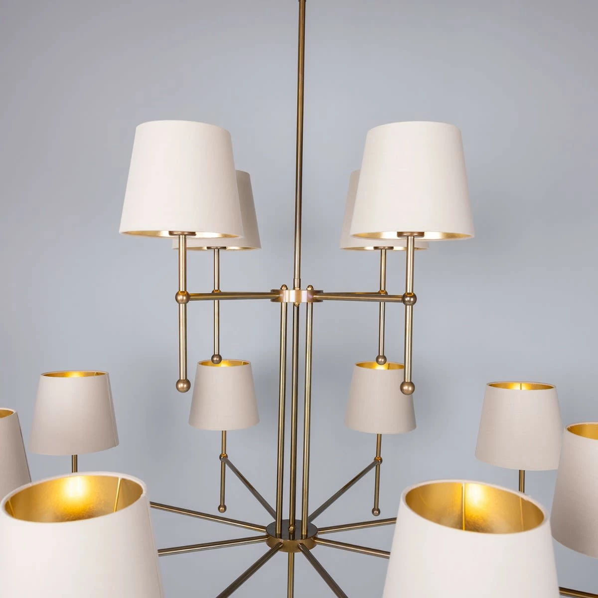 The overall height of the California chandelier is 75″ and width 50″. It’s available in four colour finishes as standard: antique brass, antique silver, polished brass and satin brass.