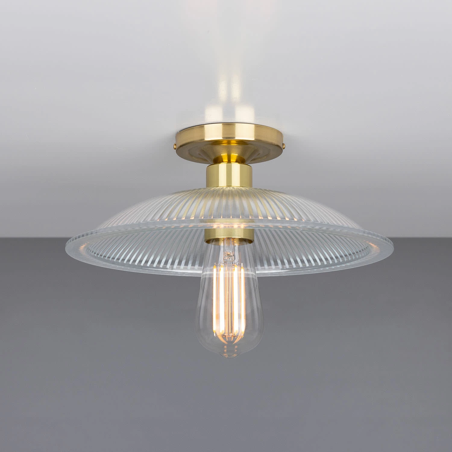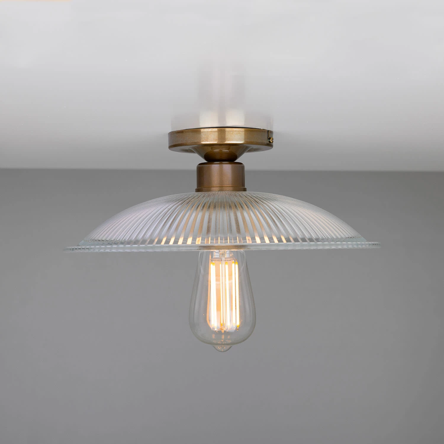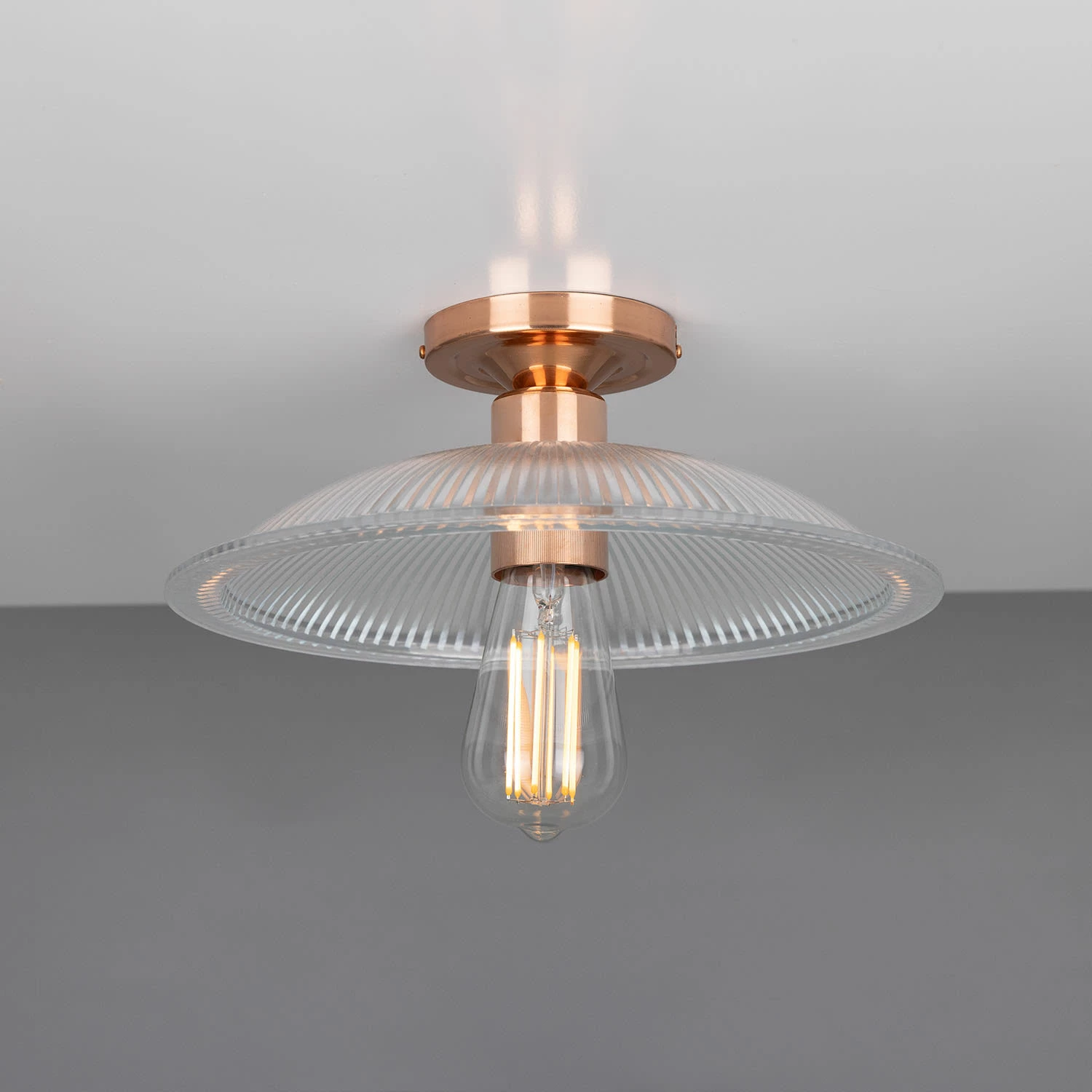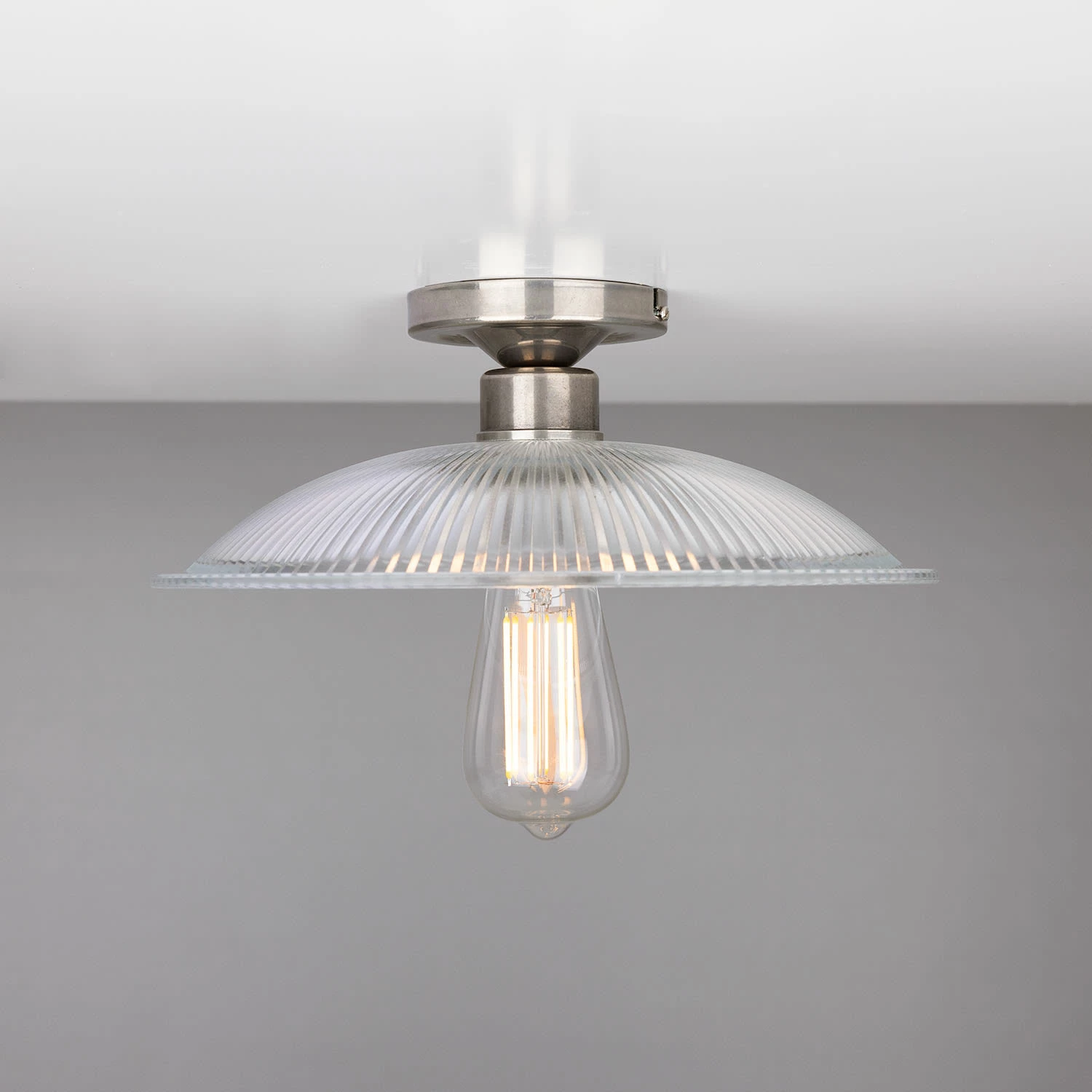 Elegant and sophisticated, the Calix Holophane Flush Ceiling Fitting has a modern flair and is easy to coordinate with your decor. This flush ceiling light looks splendid mounted in a hallway or over a kitchen table. A contemporary flush ceiling light that gives a great lighting effect. The prismatic glass shade refracts light, providing an even, glare-free illumination whose tone can be changed dependent on the bulb used. Suitable for any modern and contemporary interiors, this Holophane ceiling light looks great when teamed with an Edison-style filament bulb to enhance an industrial atmosphere. Bulbs are sold separately.