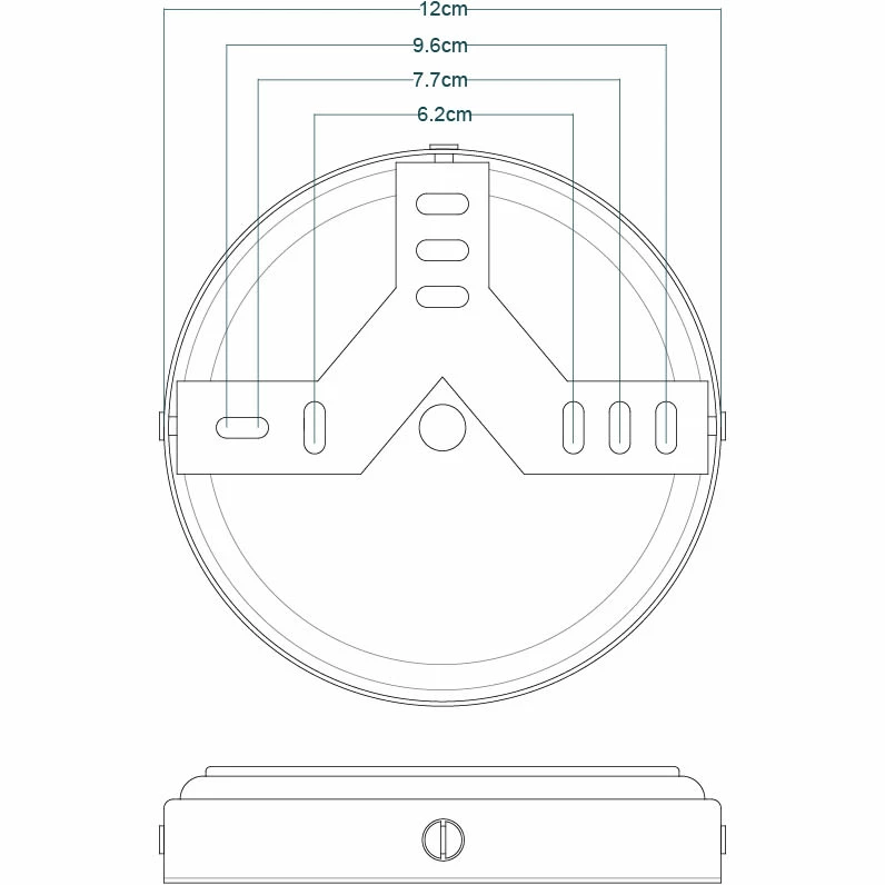 A simple cast brass wall bracket with switch. Its diameter is 120mm and depth 25mm. The surface of this circular wall bracket is flat with round, chamfered edges. On the flat surface is a small, black switch used to turn the light fixture on or off.