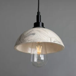 Kingii Marbled Ceramic Dome Bathroom Pendant Light 7.9″ IP44