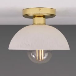 Kauri Organic Ceramic Dome Ceiling Light 7.9″, Matte White Striped