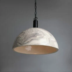 Ferox Small Ceramic Dome Pendant Light 5.5″, Matte White Striped