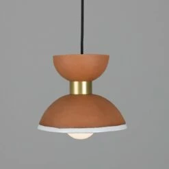 Nakaii Organic Ceramic Pendant Light 7.9″, Terracotta And White