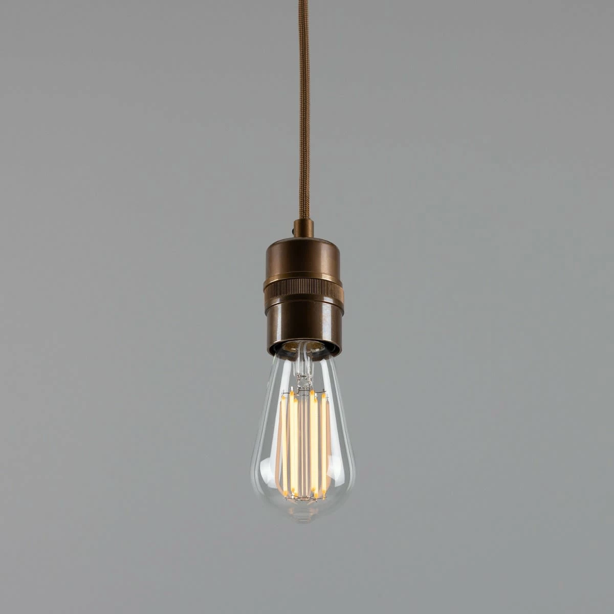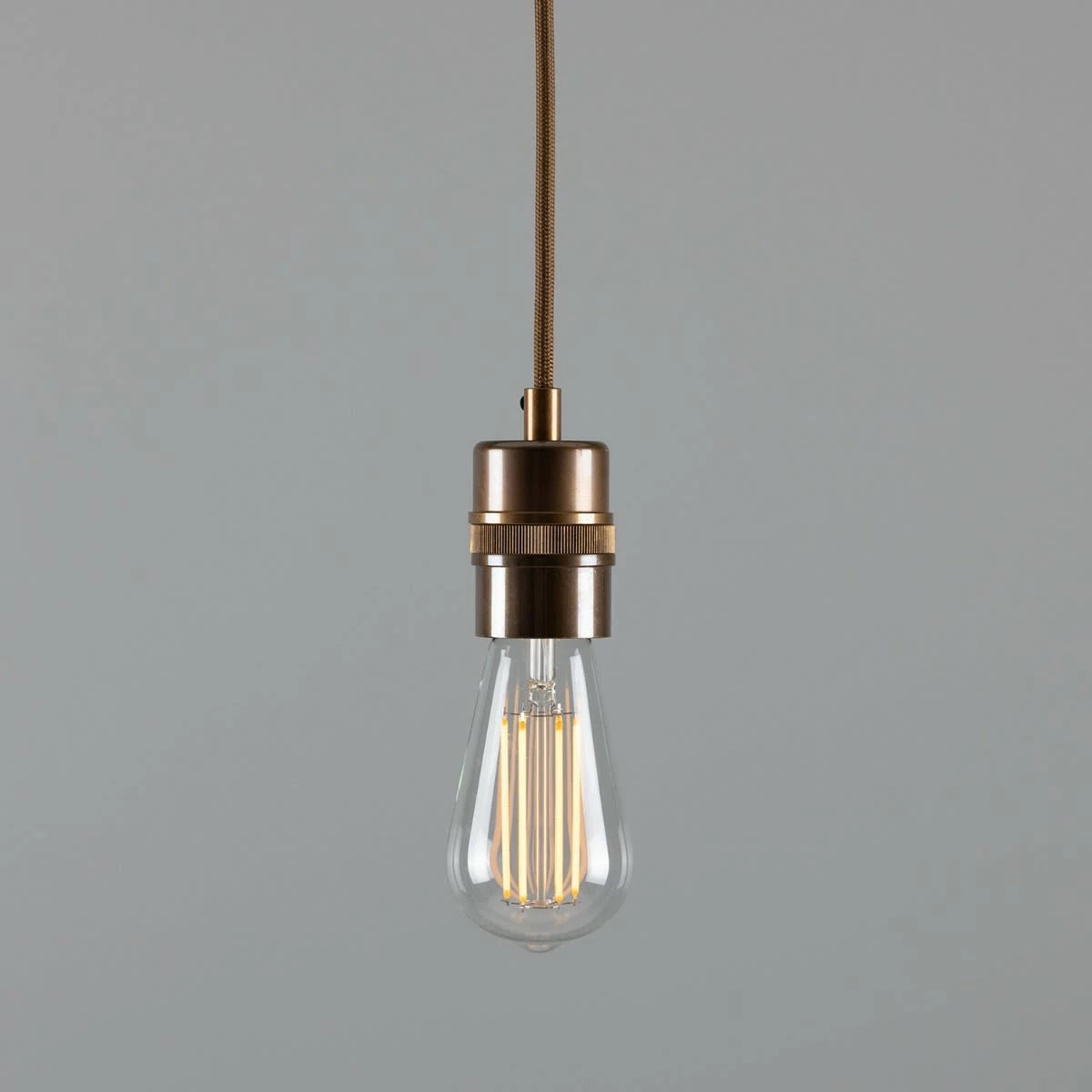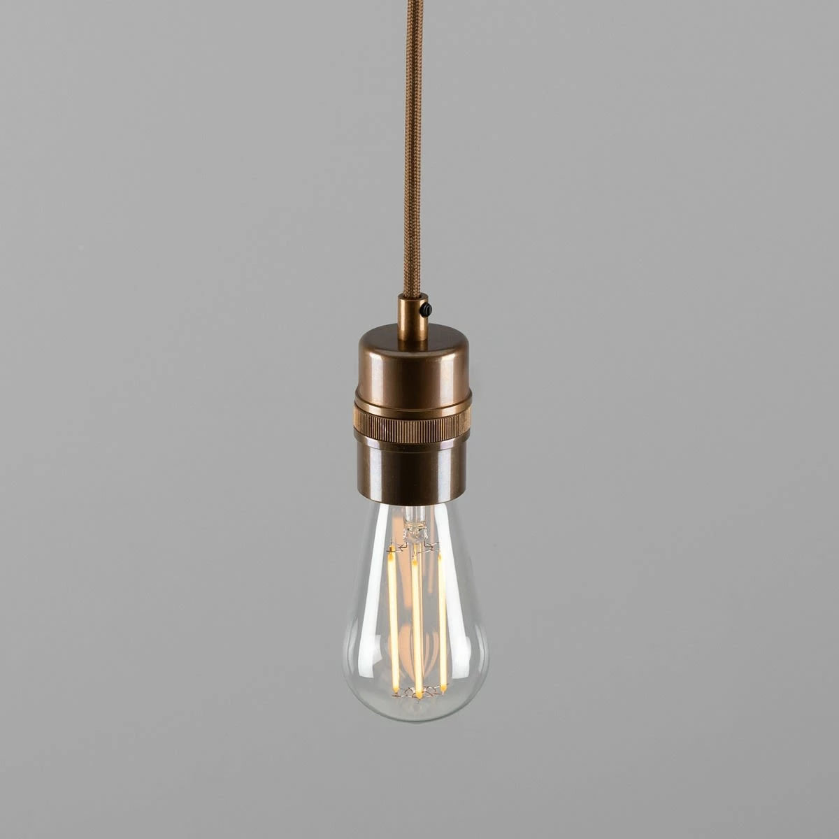The Devon pendant can accommodate shades of different sizes. Inside its brass casing is a plastic E27 lamp holder.