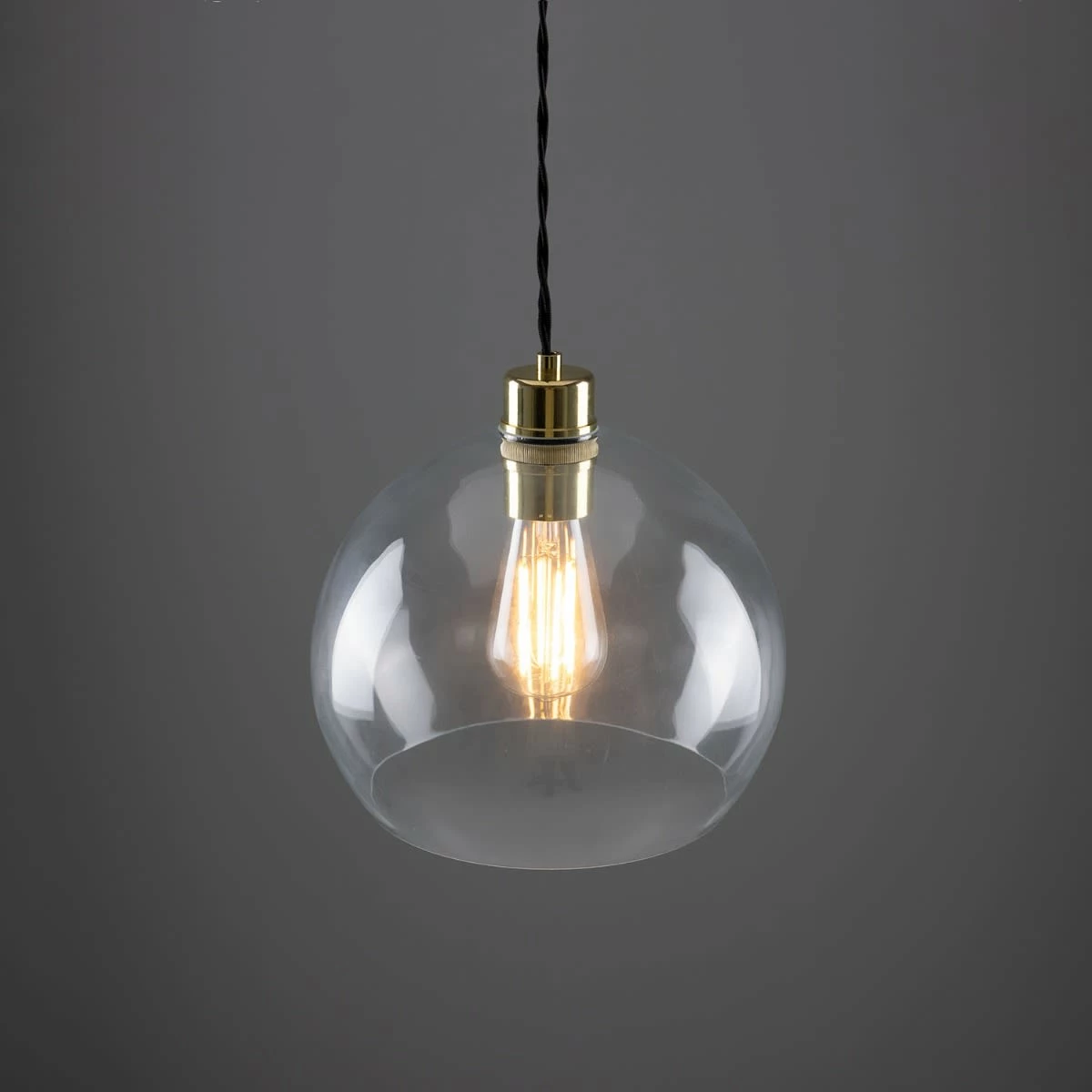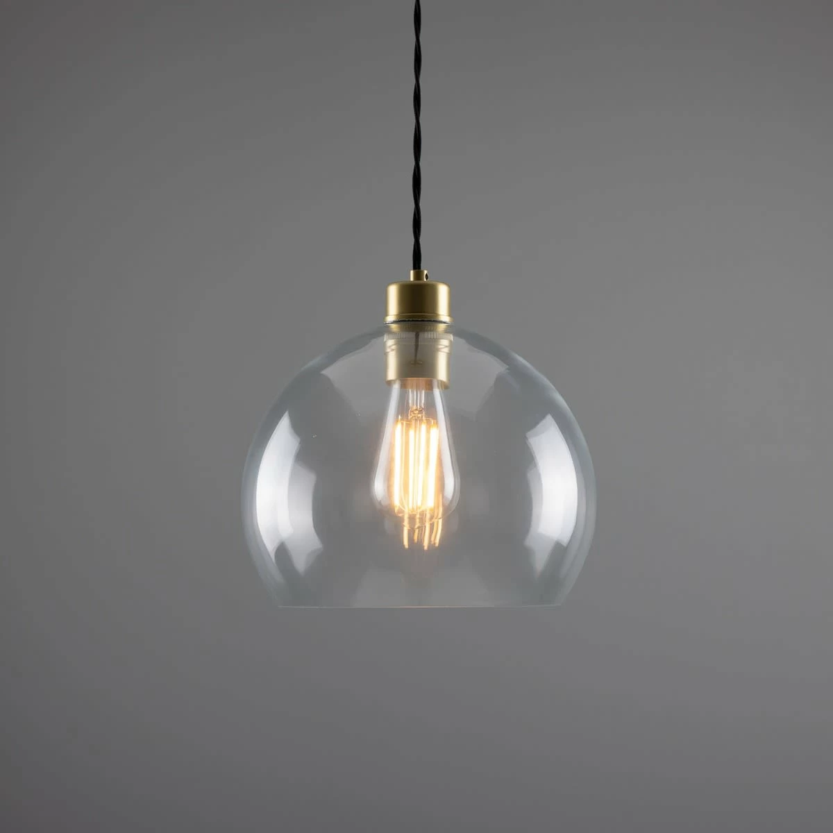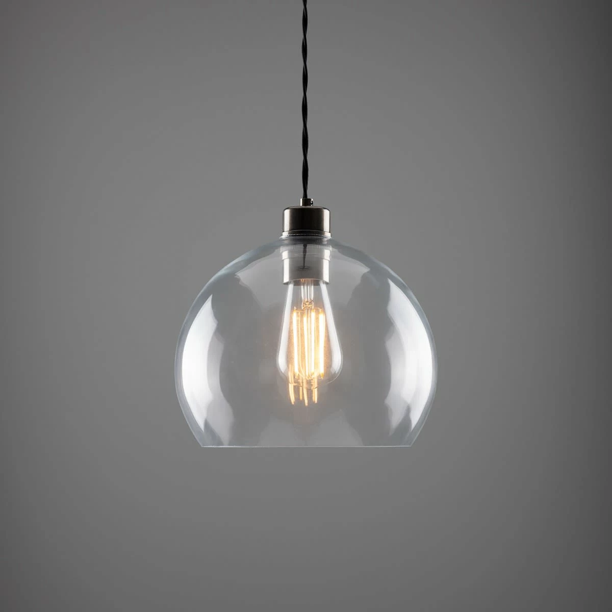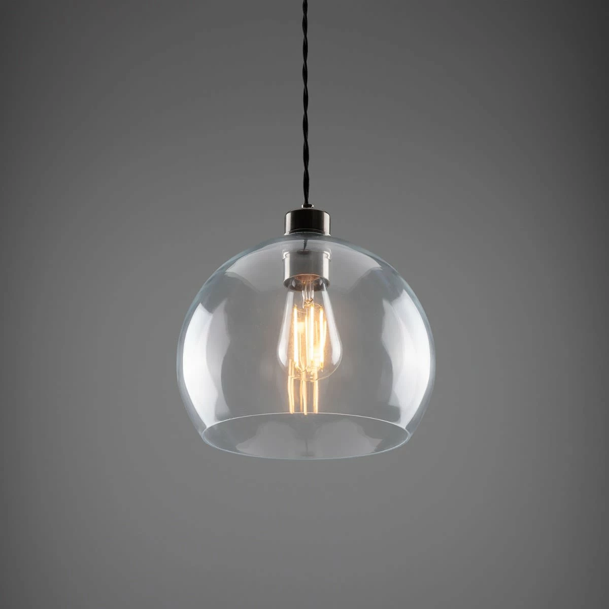 Designed to showcase the warmth of Edison-style bulbs, the Eden 25cm Clear Sphere Pendant will add a touch of unique style to your home. This glass pendant light will add a fresh, clean look to kitchens or dining areas. Simple and chic, this glass pendant light with an open bottom will enhance a visual comfort. Hang as individual pendant over a desk or kitchen work space or cluster several together for a more modern look. Suitable for any minimalist or industrial interiors, this glass pendant light looks fantastic when lit with an Edison squirrel cage bulb for a soft lighting. Bulbs are sold separately.
