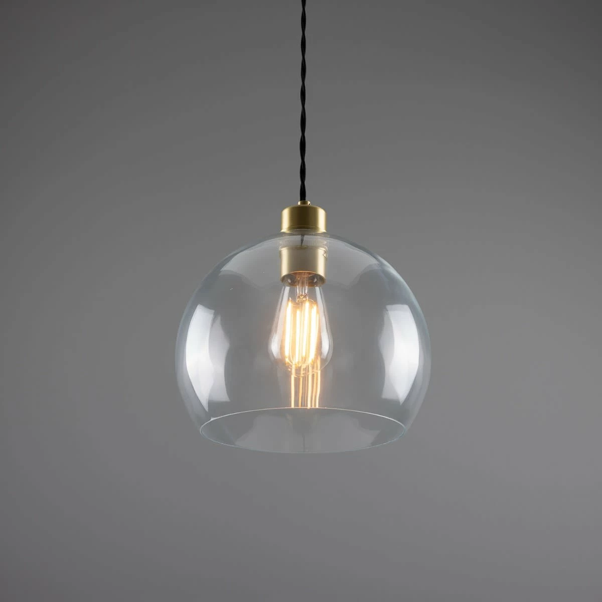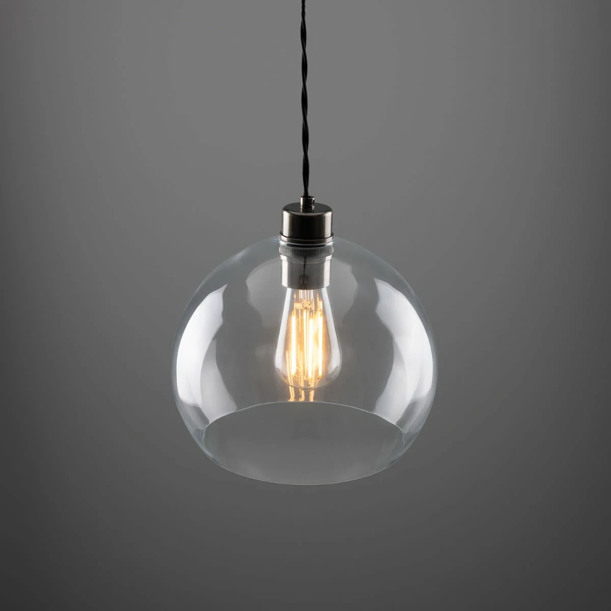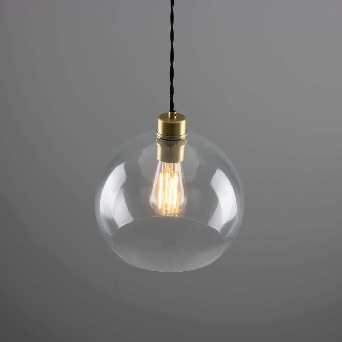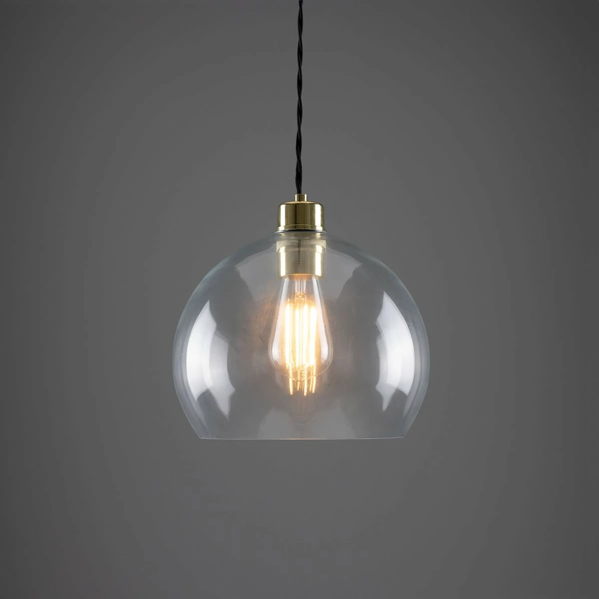 Designed to showcase the warmth of Edison-style bulbs, the Eden 25cm Clear Sphere Pendant will add a touch of unique style to your home. This glass pendant light will add a fresh, clean look to kitchens or dining areas. Simple and chic, this glass pendant light with an open bottom will enhance a visual comfort. Hang as individual pendant over a desk or kitchen work space or cluster several together for a more modern look. Suitable for any minimalist or industrial interiors, this glass pendant light looks fantastic when lit with an Edison squirrel cage bulb for a soft lighting. Bulbs are sold separately.