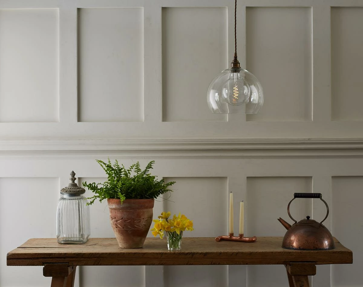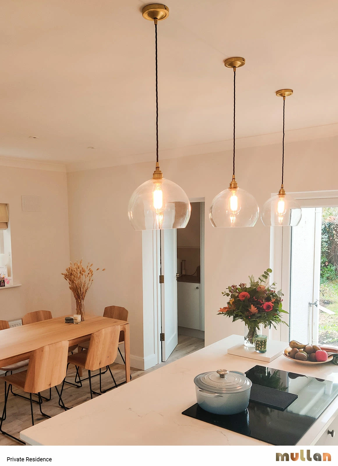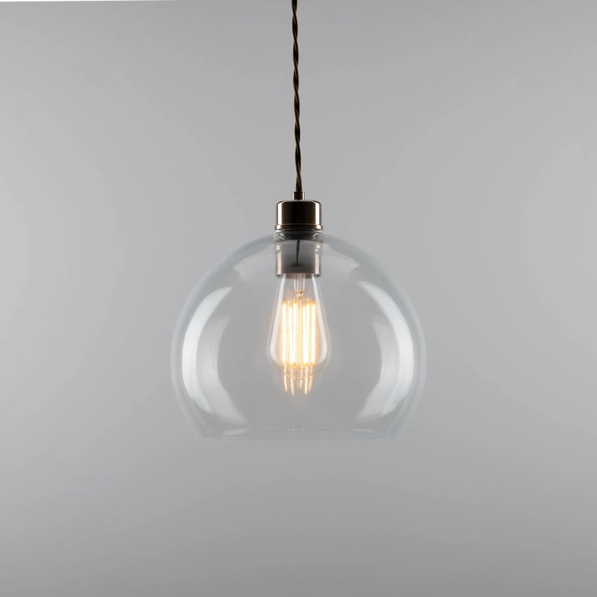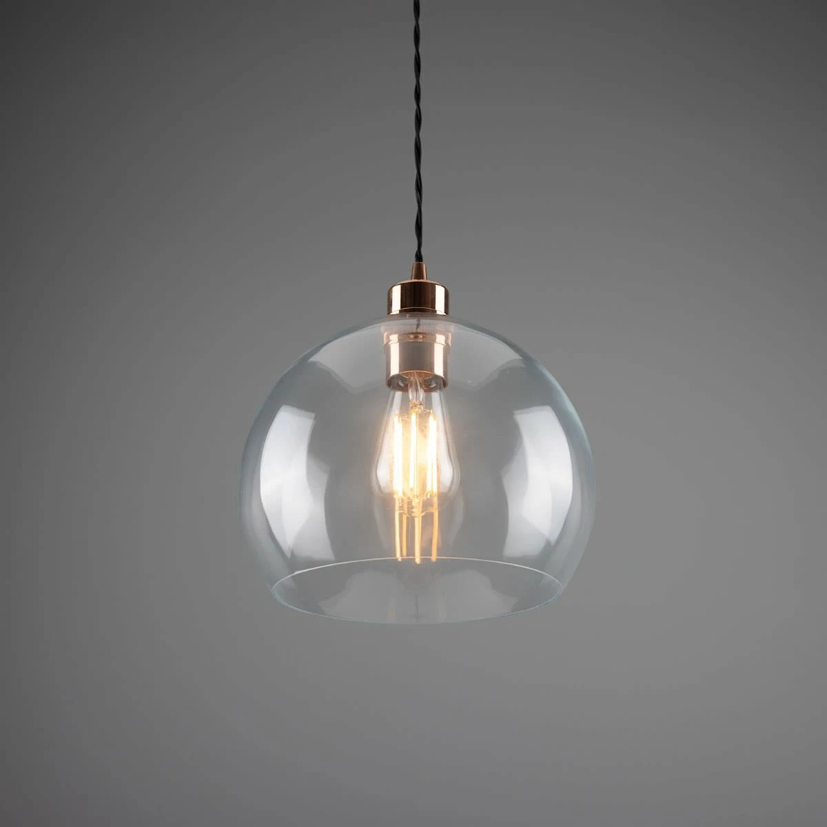 Designed to showcase the warmth of Edison-style bulbs, the Eden 25cm Clear Sphere Pendant will add a touch of unique style to your home. This glass pendant light will add a fresh, clean look to kitchens or dining areas. Simple and chic, this glass pendant light with an open bottom will enhance a visual comfort. Hang as individual pendant over a desk or kitchen work space or cluster several together for a more modern look. Suitable for any minimalist or industrial interiors, this glass pendant light looks fantastic when lit with an Edison squirrel cage bulb for a soft lighting. Bulbs are sold separately.