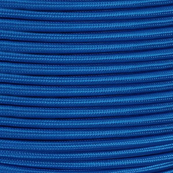 3 Core Blue Braided Flexible Cable. This coloured lighting cable is ideal for decorative lighting. The woven fabric flex can be cut to any required length. This fabric cable can be used in homes, shops, galleries, restaurants, and more.