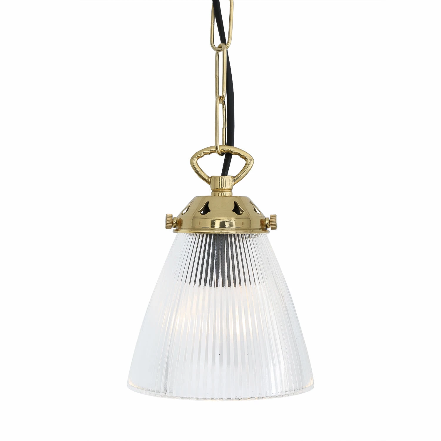 Detailed with a clear prismatic Holophane glass, the Gadar Glass Industrial Pendant creates a sparkling glow perfect for industrial interiors. This Holophane pendant light adds visual warmth and illumination above the kitchen island, dining table, workbench or desk. Simple and chic, this industrial style pendant lamp features an open bottom to diffuse light throughout the pendant to reduce glare and enhance a visual comfort in any space. Suitable for any modern and industrial interiors, this Holophane pendant light looks great when teamed with a warm bulb for a soft lighting. Bulbs are sold separately.
