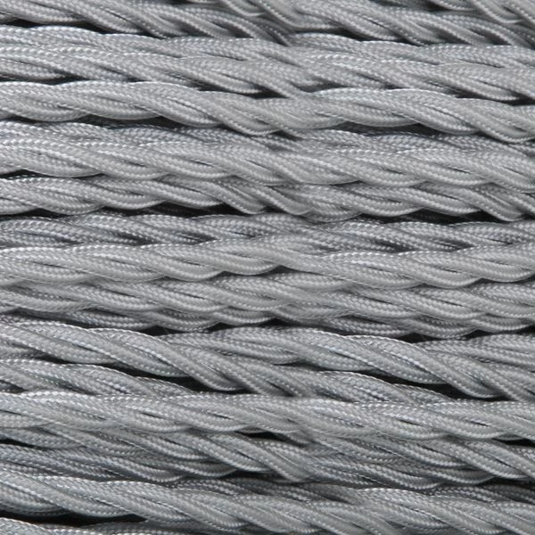 2 Core Grey braided lighting cable. This coloured lighting cable is ideal for decorative lighting. This woven silk fabric flex can cut the cable to any required length. The braided cable looks well in historic lighting and traditional lighting fixtures.