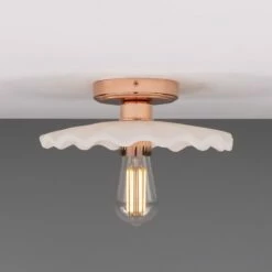 The refreshing matte white finish of this ceramic ceiling light gives it a clean, minimalist look, while the hand-carved striped texture on its rippled shade adds a rustic element that showcases the artisanal efforts of our in-house ceramicists.