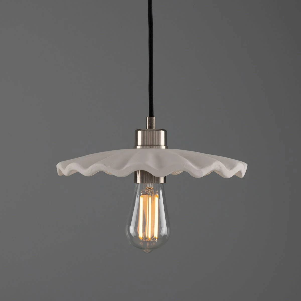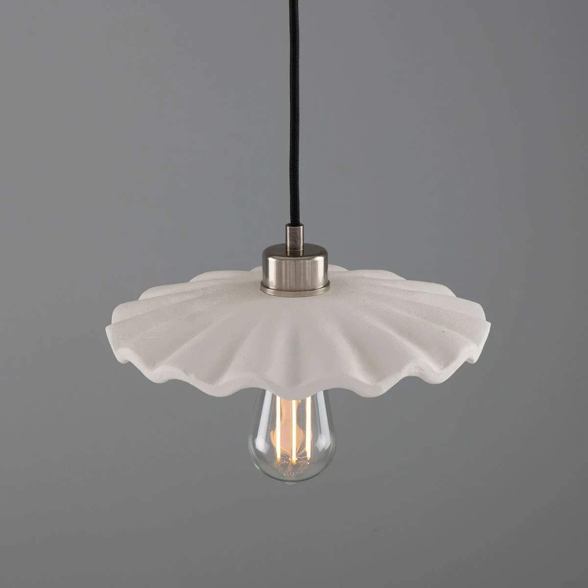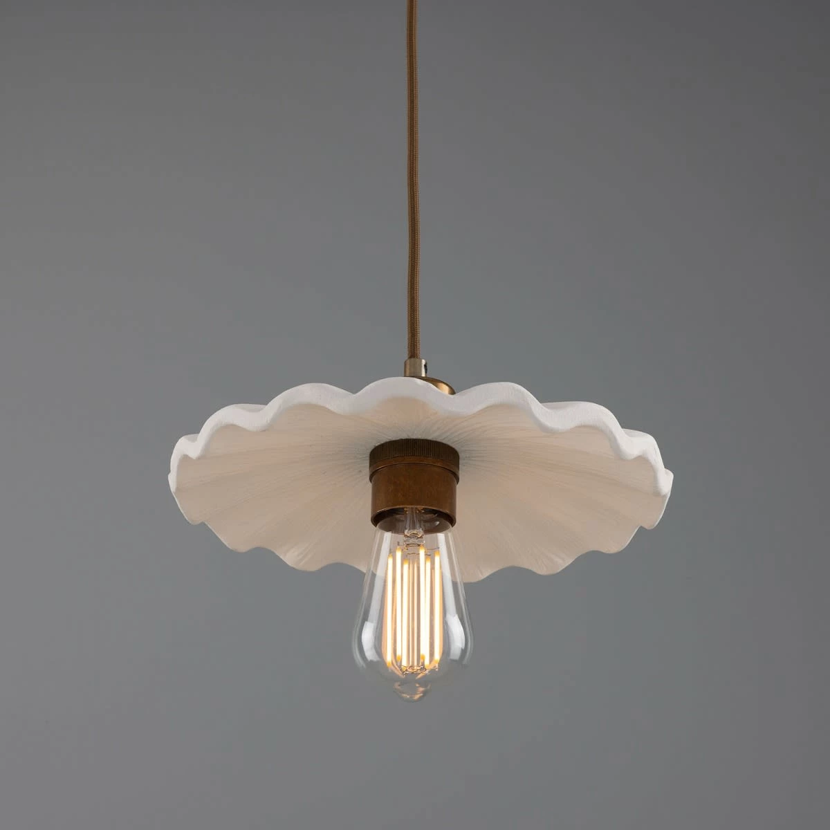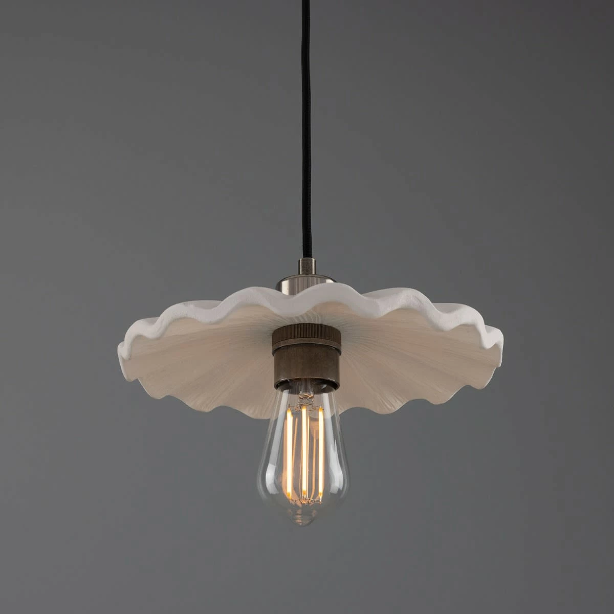 Influenced by the Kapok tree found in tropical locations, the Kapok ceramic pendant subtly resembles its namesake with its wavy, umbrella shade.