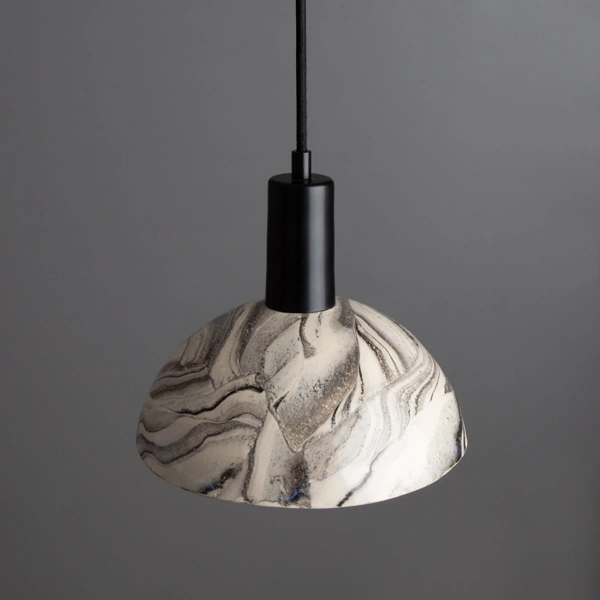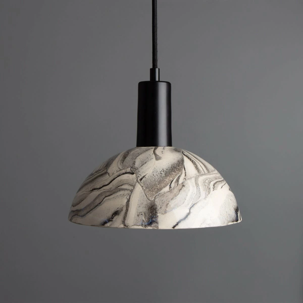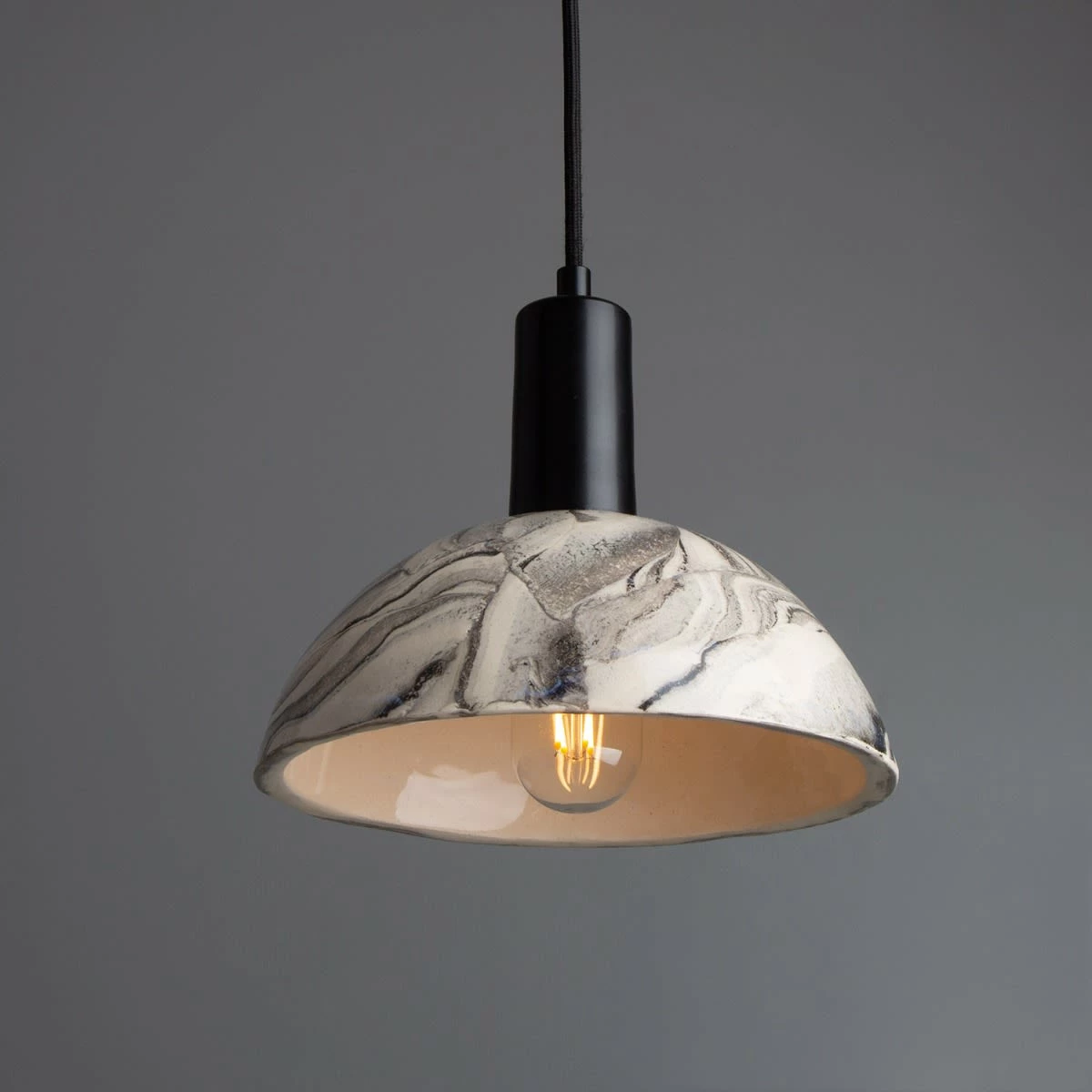 The Kauri marbled ceramic pendant light is rich in character. Supporting a dome-shaped shade, this ceramic pendant is a charming addition to interiors.