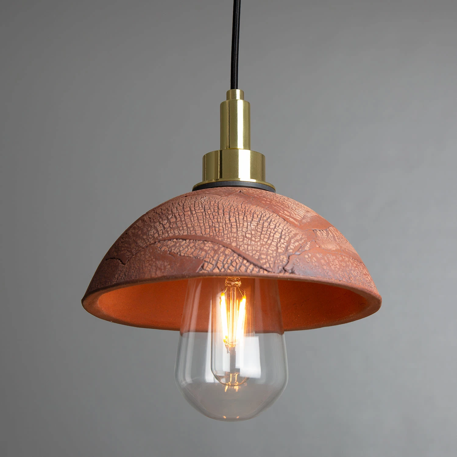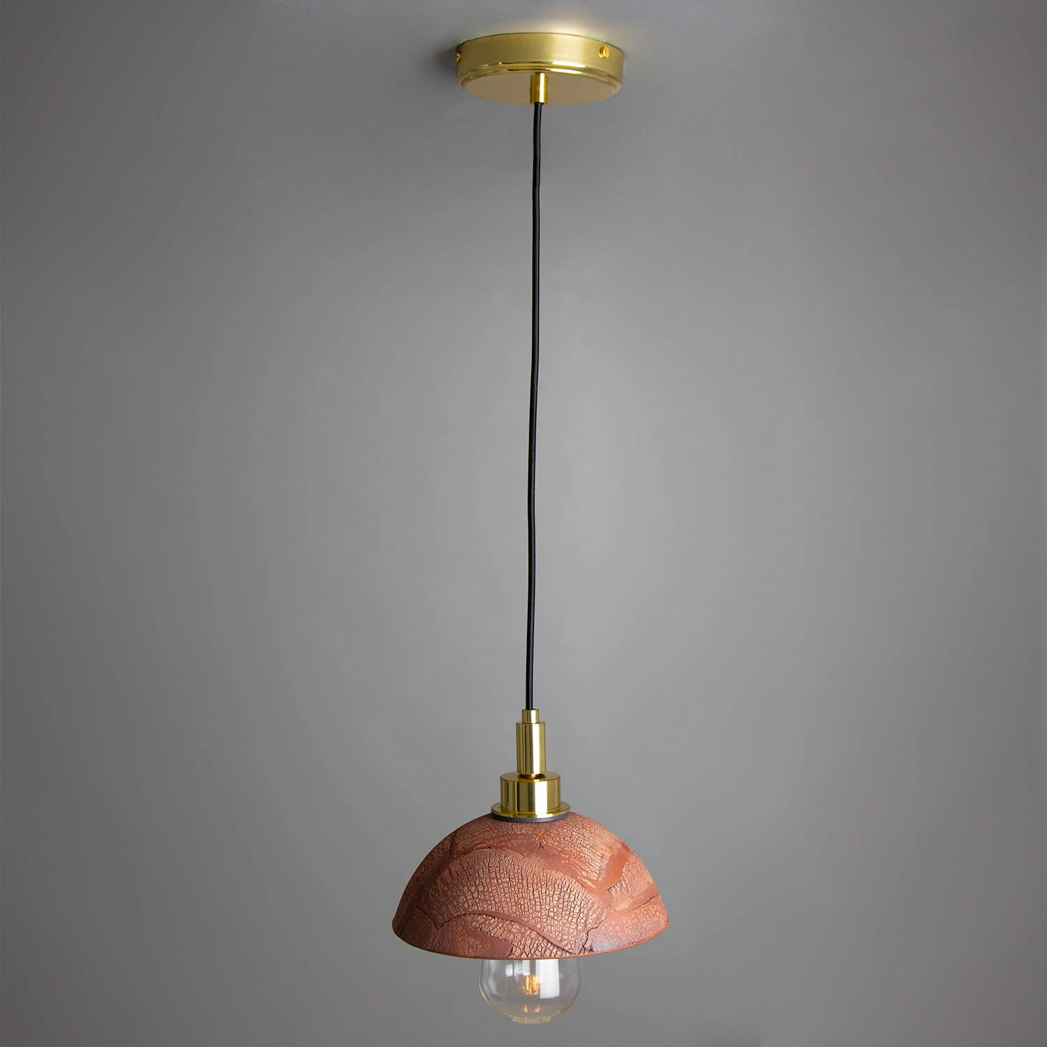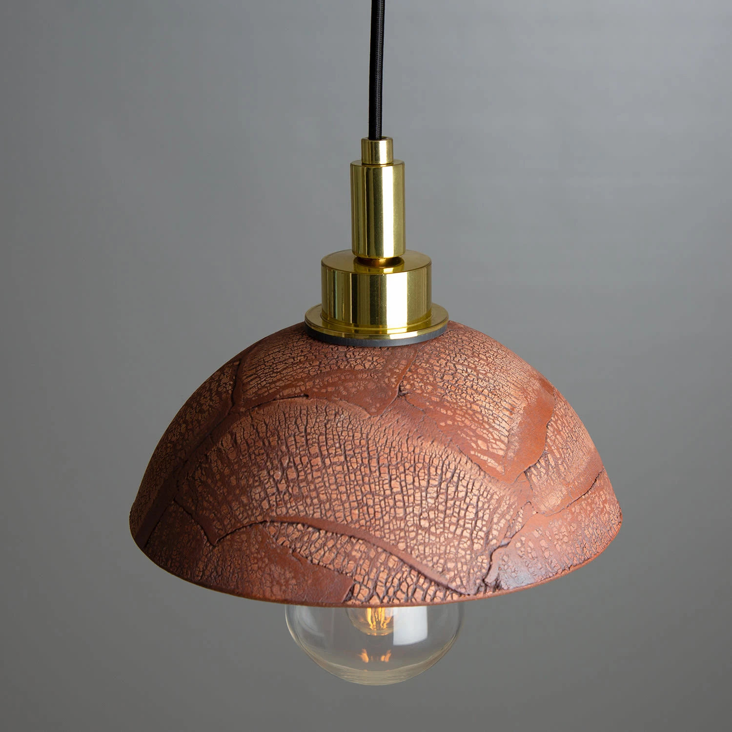 The Red Iron colour finish of this ceramic pendant reveals the shade’s coarsely crackled pattern, which is handcrafted in our ceramic studio in Mullan Village.