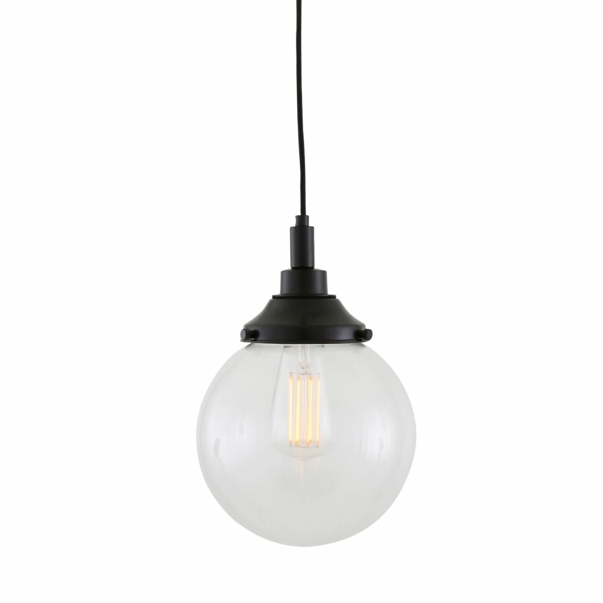 The Laguna pendant is a clear glass globe pendant that can be installed in most bathroom and outdoor locations. This bathroom globe light is rated IP44 so it can withstand splashes of water from any direction. This means that it’s safe to hang over a bath tub or vanity unit, for example.