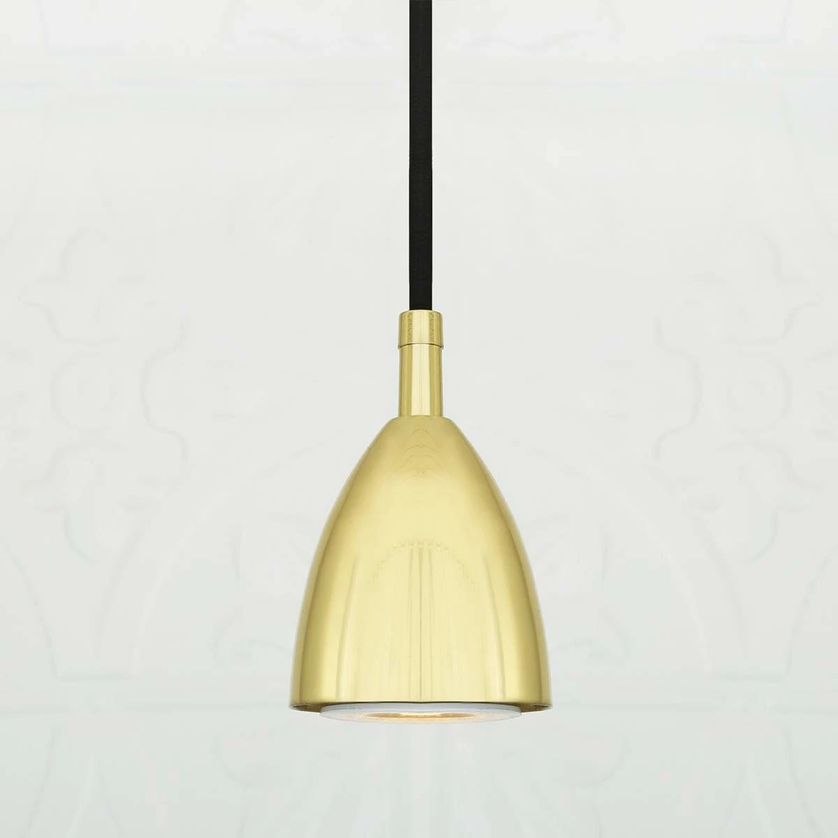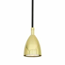 The Lainio pendant light is a modern pendant with a nose cone shape, under which an LED GU10 spotlight bulb is discreetly housed. The Lainio is very minimal and perfect for modern kitchens and restaurants, especially when placed in groups of three or five above kitchen islands or dining tables. This modern pendant light comes with black braided or clear PVC cord and an accompanying ceiling rose. Colour finishes include antique brass, antique silver, polished brass, satin brass, chrome and powder coated white or black. The GU10 bulb is sold separately.
