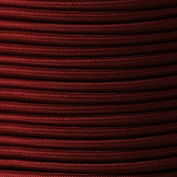2 Core Maroon Braided Flexible Cable. This coloured lighting cable is ideal for decorative lighting. This woven fabric flex can be cut to any required length. The braided cable looks well in vintage lighting and traditional lighting fixtures. It can be used both as replacement cable for an old lighting piece or for a new installation.