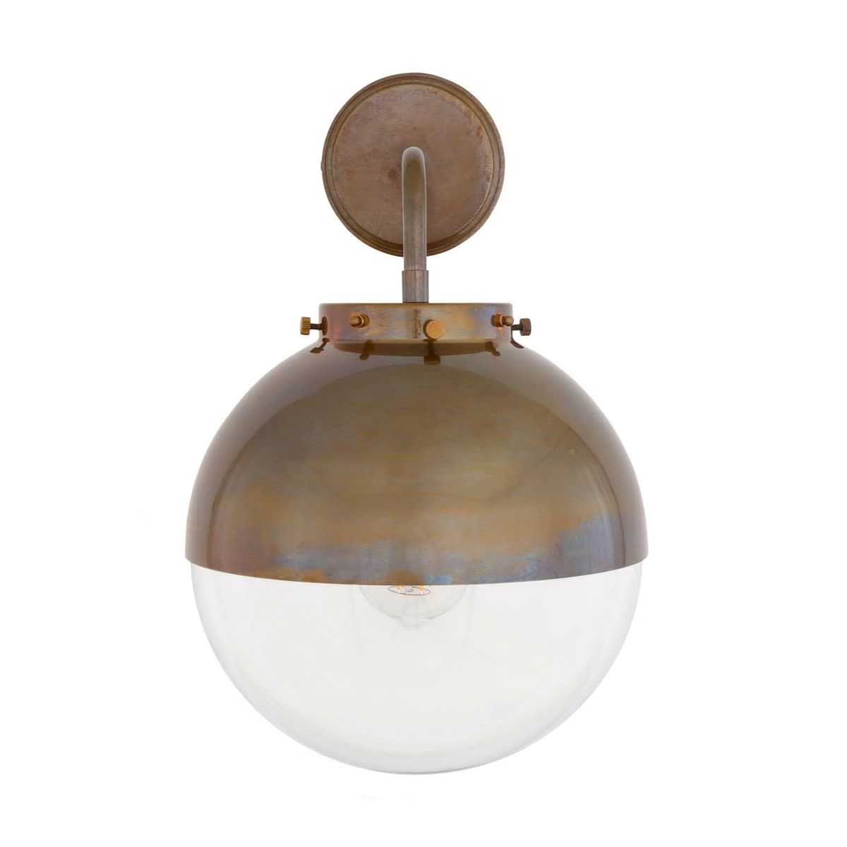 Industrialism meets the austerity of modern minimalism in the double medium spherical design of our Mica wall light. Half glass and half brass, this orb style mountable lighting fixture makes a sophisticated selection for interior designers decorating entryways, corridors, bathrooms, lobbies and hallways of neoteric homes, offices, pubs, breweries and dining establishments.