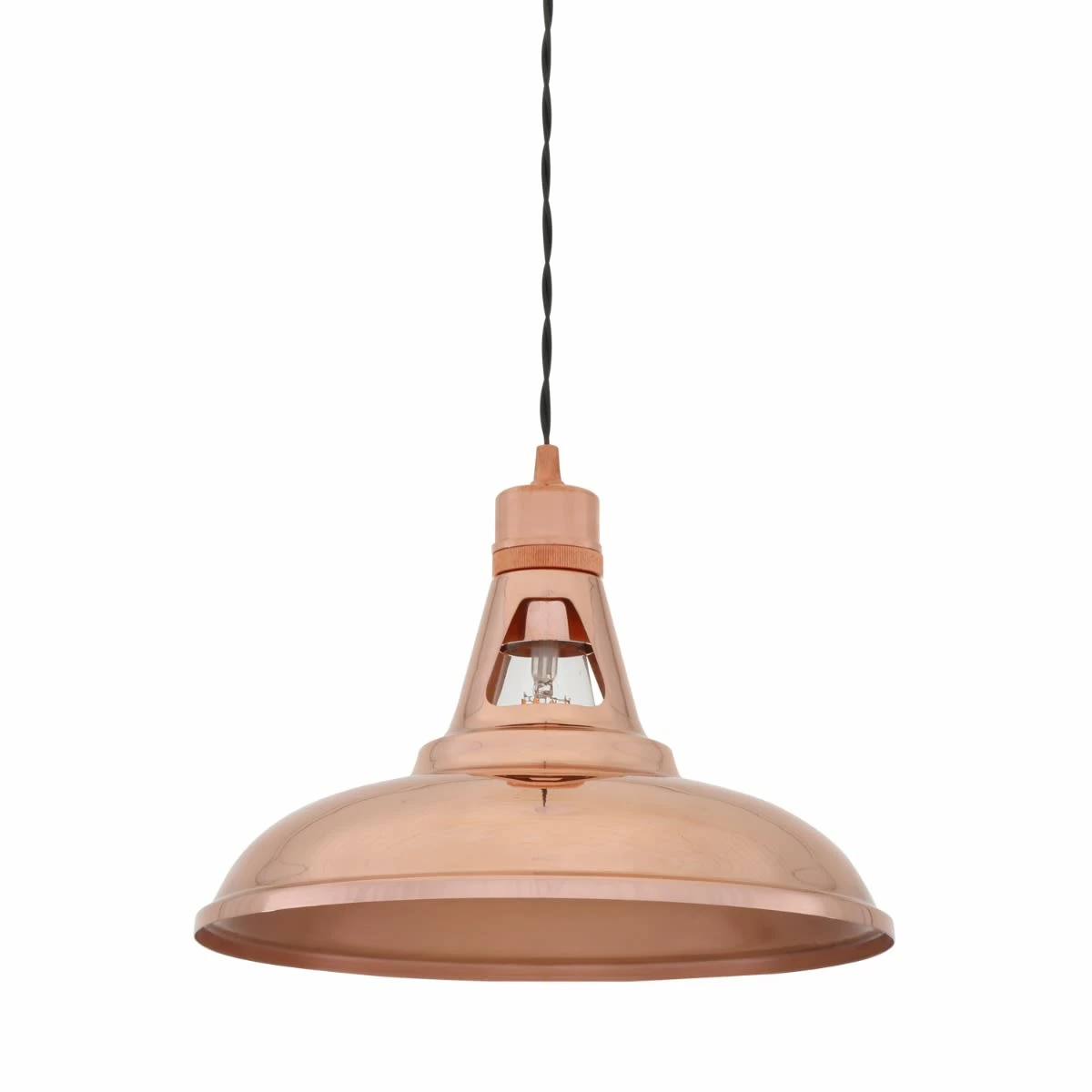 With an eye-catching design, the Minsk Industrial Copper Pendant will add a touch of modern sophistication wherever it hangs. Cast an enchanting glow over your bar or reading nook with the bold lines of this striking copper pendant lamp. Designed to become the focal point of wherever it’s installed, the circular shade of this pendant light offers plenty of task lighting for detailed work and ambiance. Its open bottom shape allows a subtle floodlight effect. Suitable for any minimalist or industrial interiors, this industrial pendant light looks great when lit with an Edison-style Bulb to create a warm glow. Bulbs are sold separately.