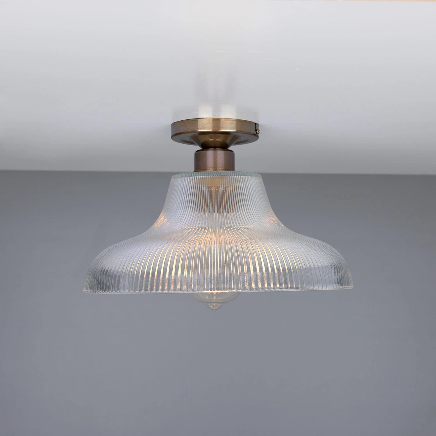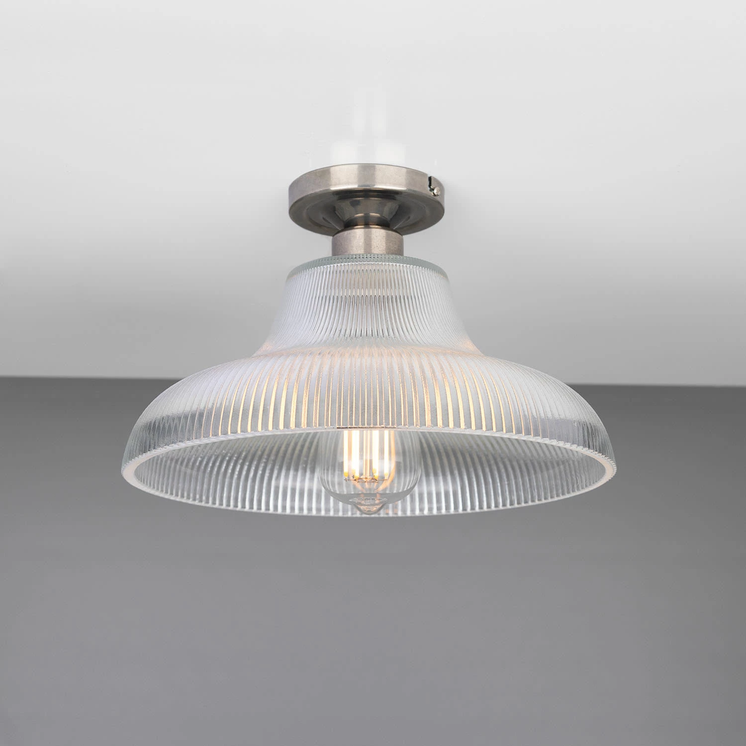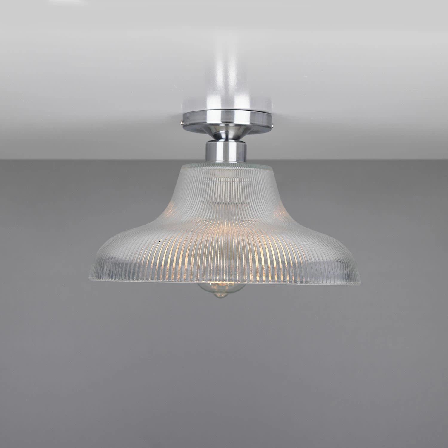 With a simple design, the Mono Industrial Railway Flush Fitting will add a timeless feel to any interior. Designed to maximize illumination even in small areas, this flush ceiling light increases light levels in the space and reduces the contrast between task and general lighting. Suitable for any modern or contemporary interiors, this Holophane ceiling light looks great when teamed with an Edison-style filament bulb for a special atmosphere. Bulbs are sold separately.