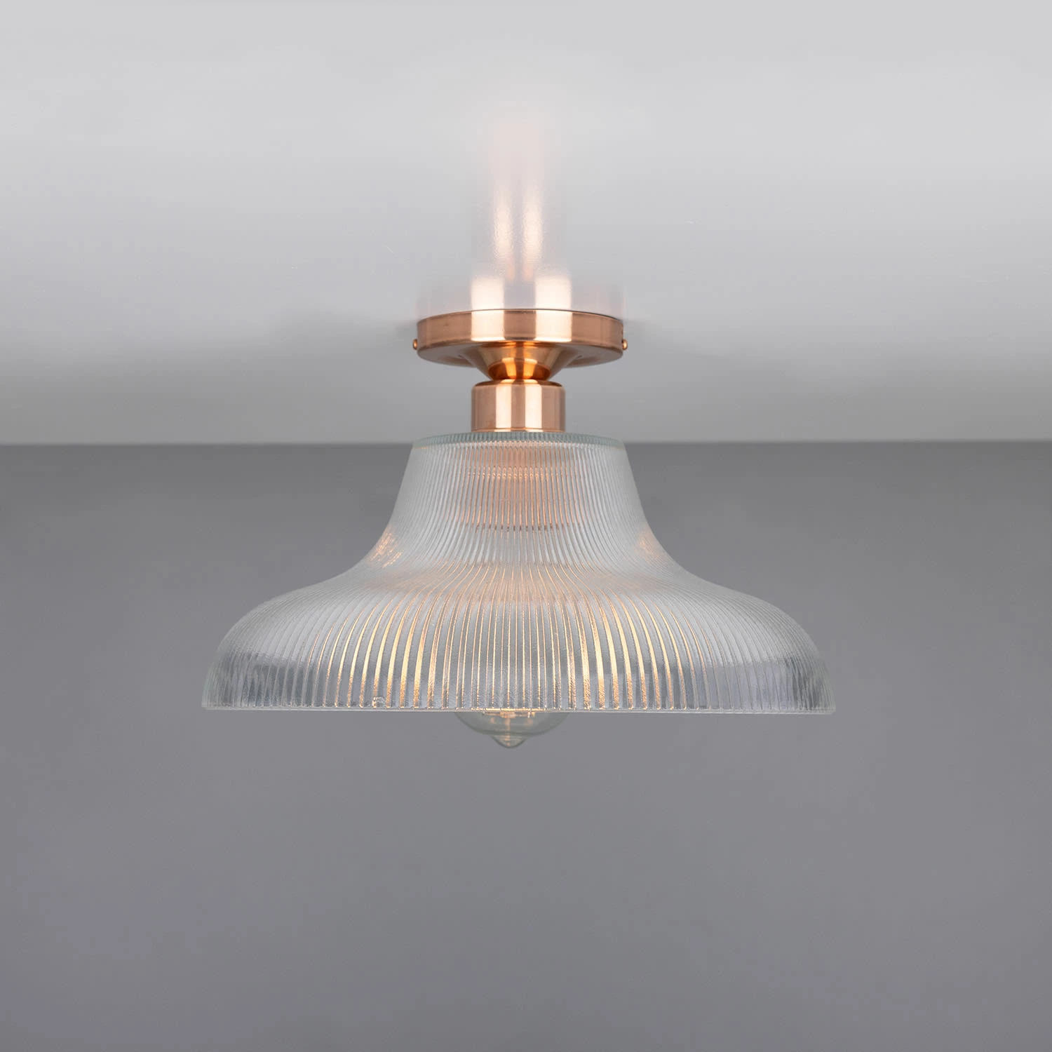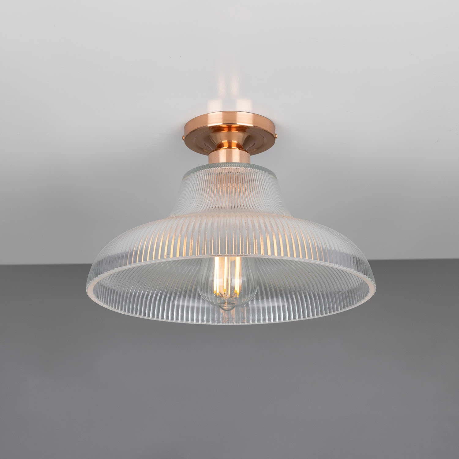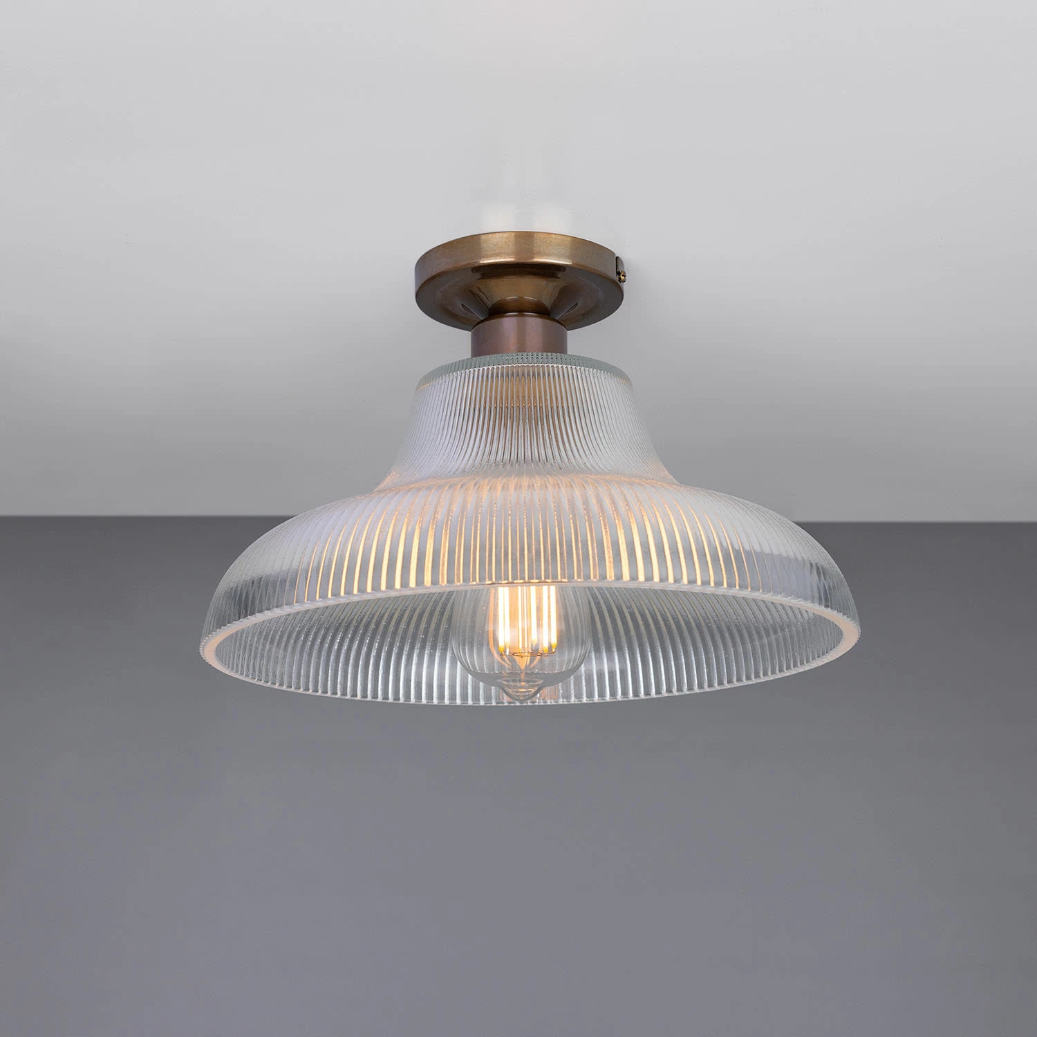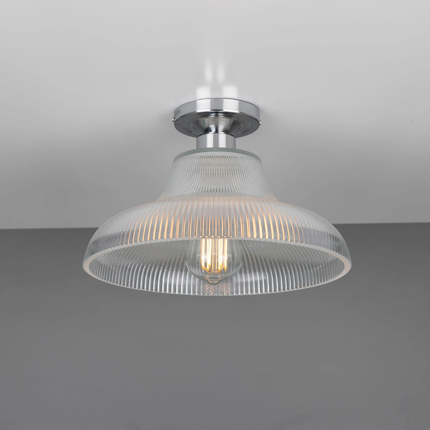 With a simple design, the Mono Industrial Railway Flush Fitting will add a timeless feel to any interior. Designed to maximize illumination even in small areas, this flush ceiling light increases light levels in the space and reduces the contrast between task and general lighting. Suitable for any modern or contemporary interiors, this Holophane ceiling light looks great when teamed with an Edison-style filament bulb for a special atmosphere. Bulbs are sold separately.
