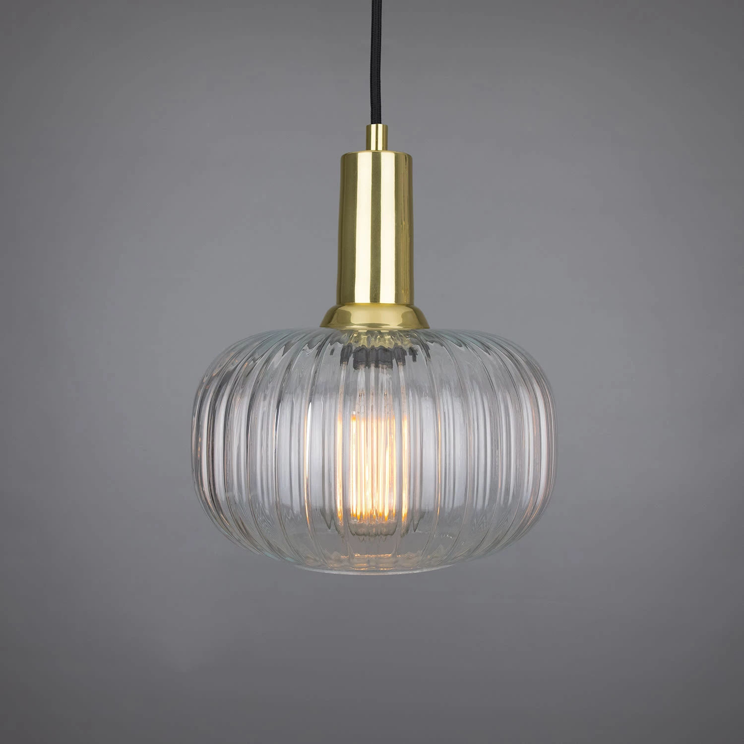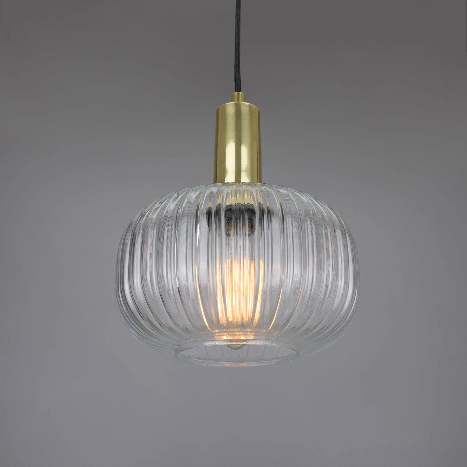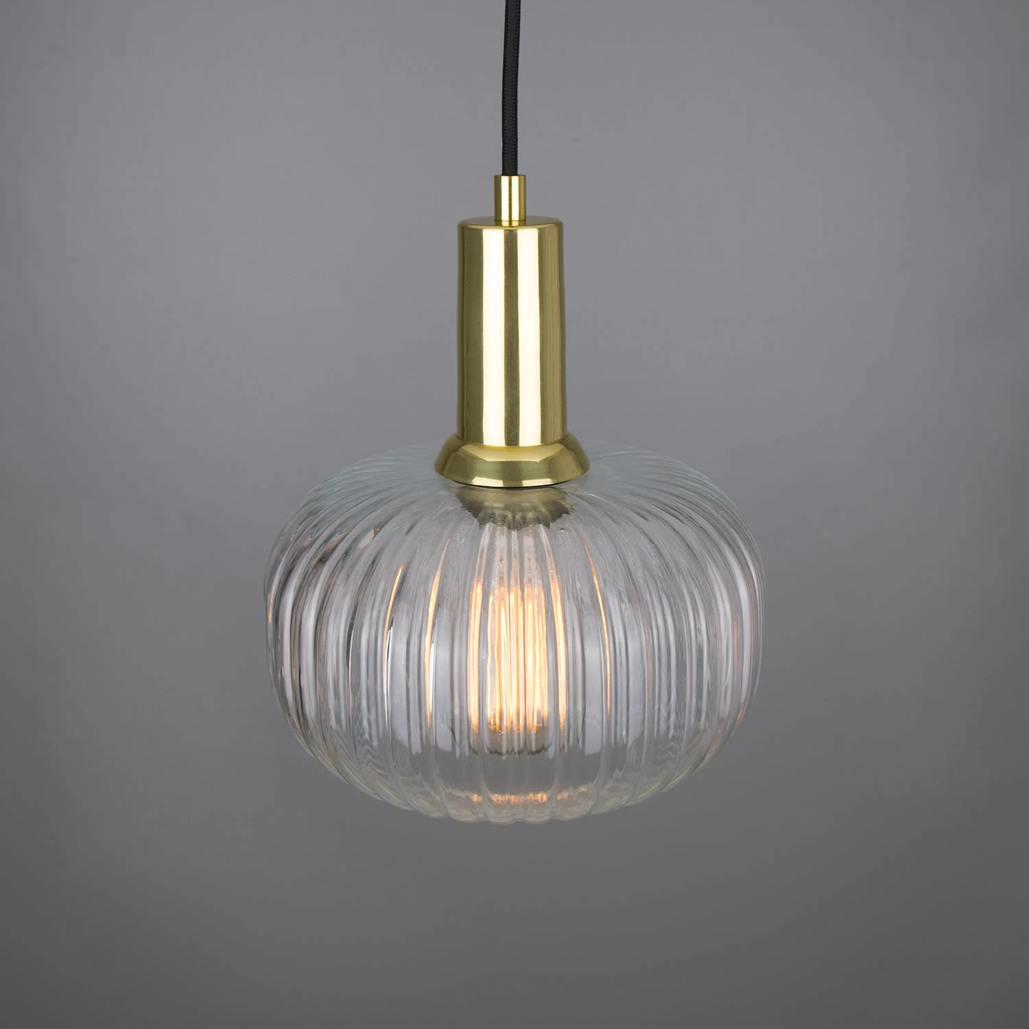 The Nehir pendant features a pumpkin-shaped reeded glass shade and elongated brass lamp holder. Inspired by Mid-century design, this reeded glass pendant measures 20cm in diameter and 25cm in height. It refracts light and creates interesting shadows within an interior.