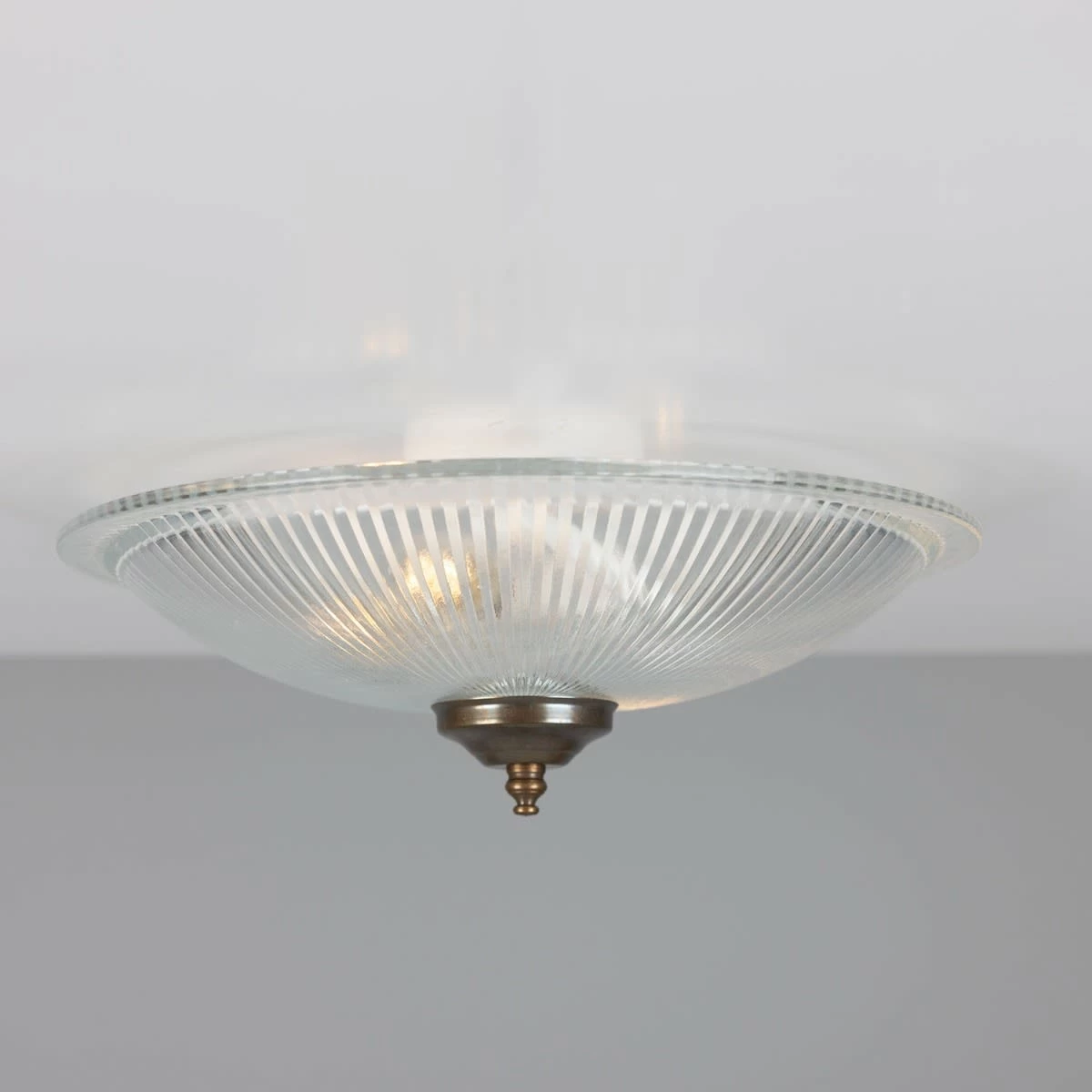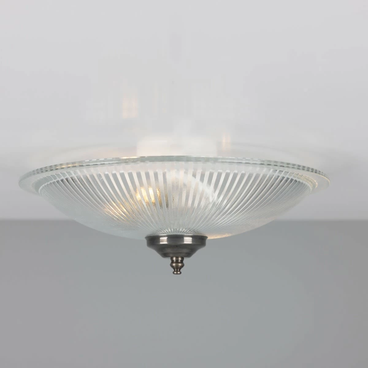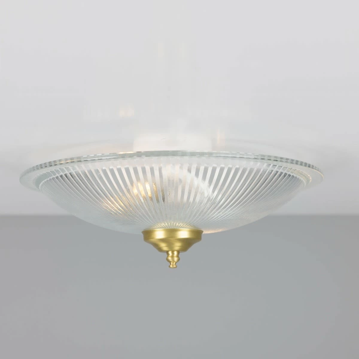 Bring a touch of classic elegance to your home with the Nicosa Shallow Holophane Ceiling Light Fitting. Ideal for small spaces, this flush ceiling light is a perfect choice to accent your bathroom or working spaces like kitchens or pantries. Designed to refract the light, this flush ceiling light features an elegant Holophane glass shade that emanates light outward over your entire space as if it has multiple light sources. Suitable for any modern and contemporary interiors, this Holophane ceiling light looks great when teamed with a warm bulb for a soft lighting. Bulbs are sold separately.