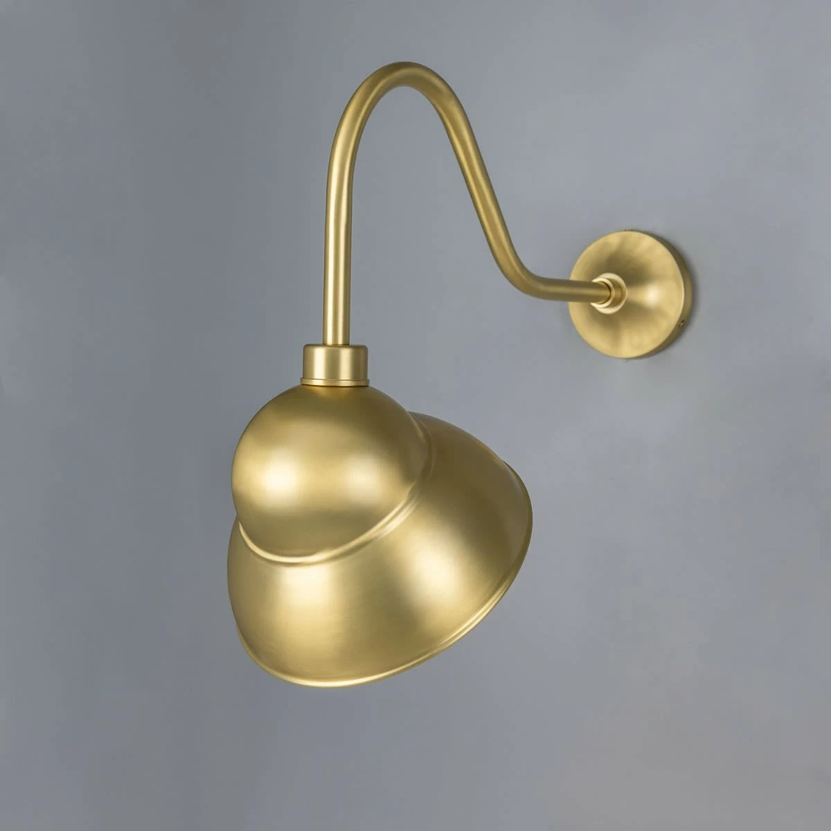 Highlighted by a curved metal sleeve that positions a retro brass shade to illuminate walkways, sheltered porches and patios or entrances, our Novo sign light is a sophisticated selection for vintage-style settings. Crafted from a combination of brass and steel, this vintage sign light is the durable lighting choice adored by decorators and designers.