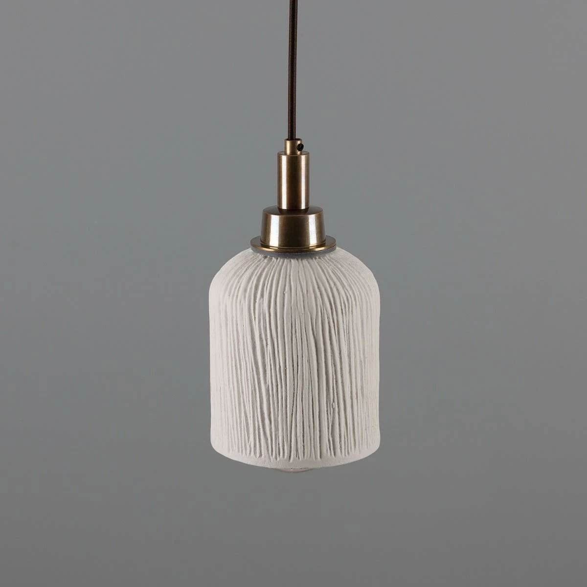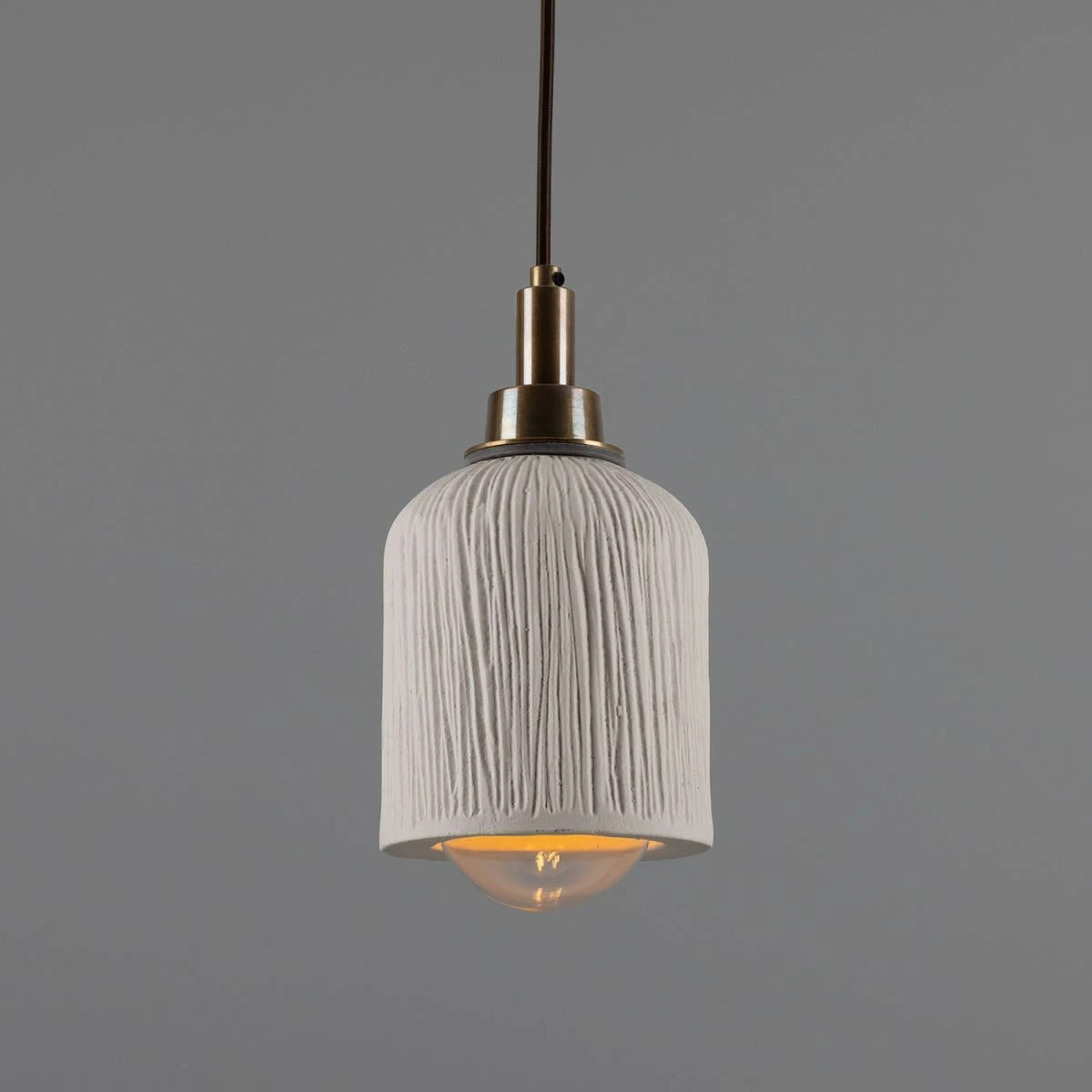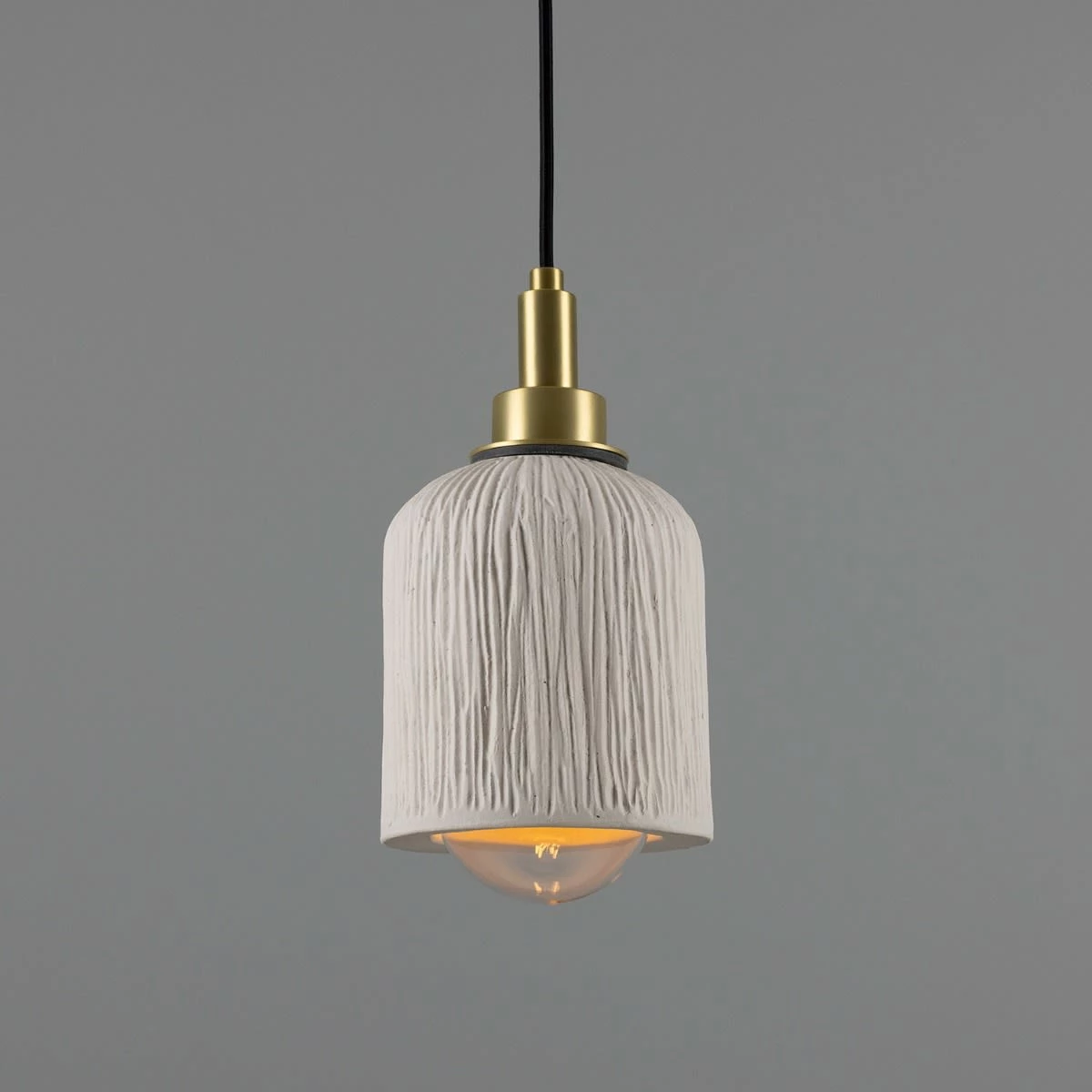 The Osier ceramic bathroom pendant sports a petite cylindrical matte white ceramic shade supported by a simple brass lamp holder. Inspired by our natural surroundings, this ceramic pendant light takes its name from the Osier willow shrub that reflects its organic roots.