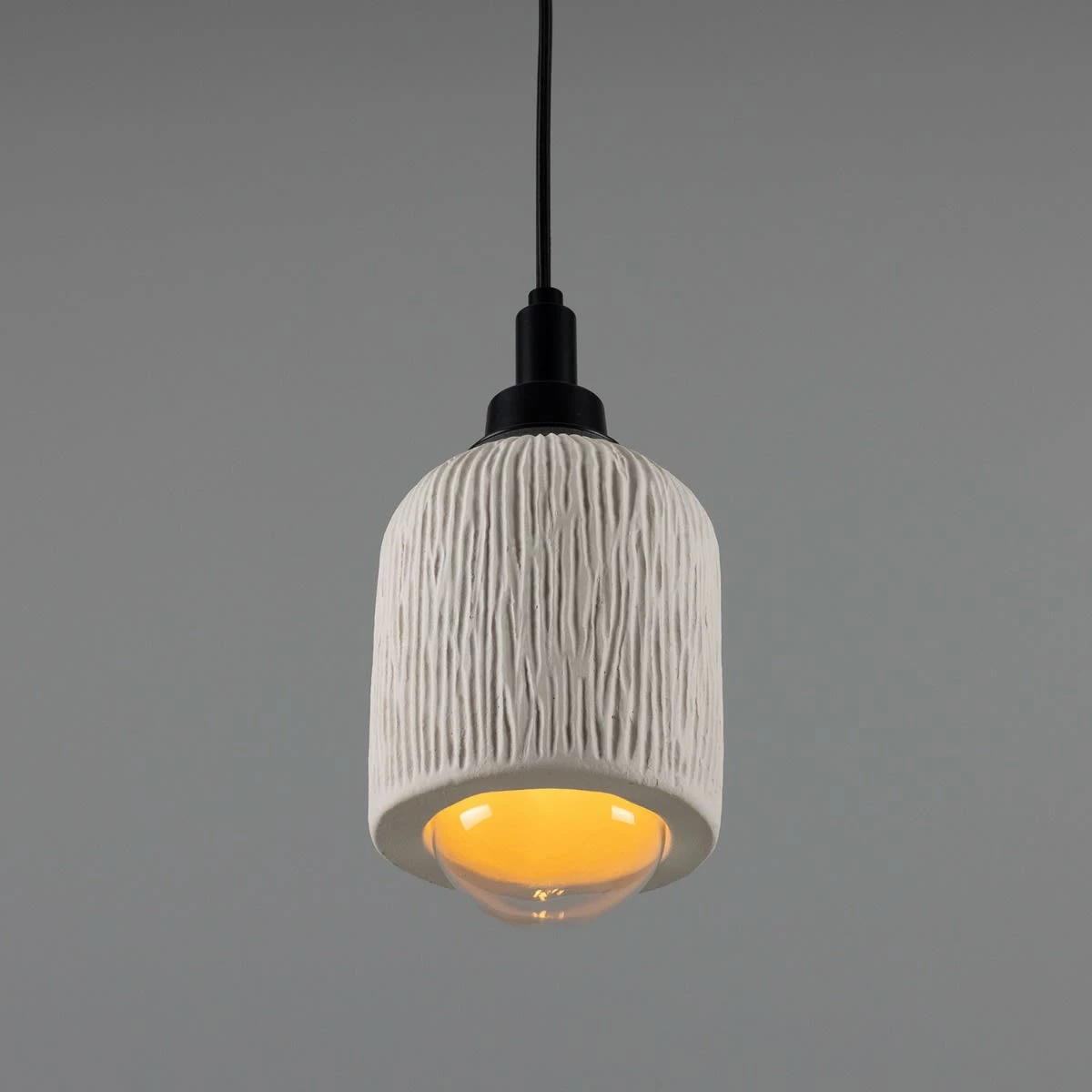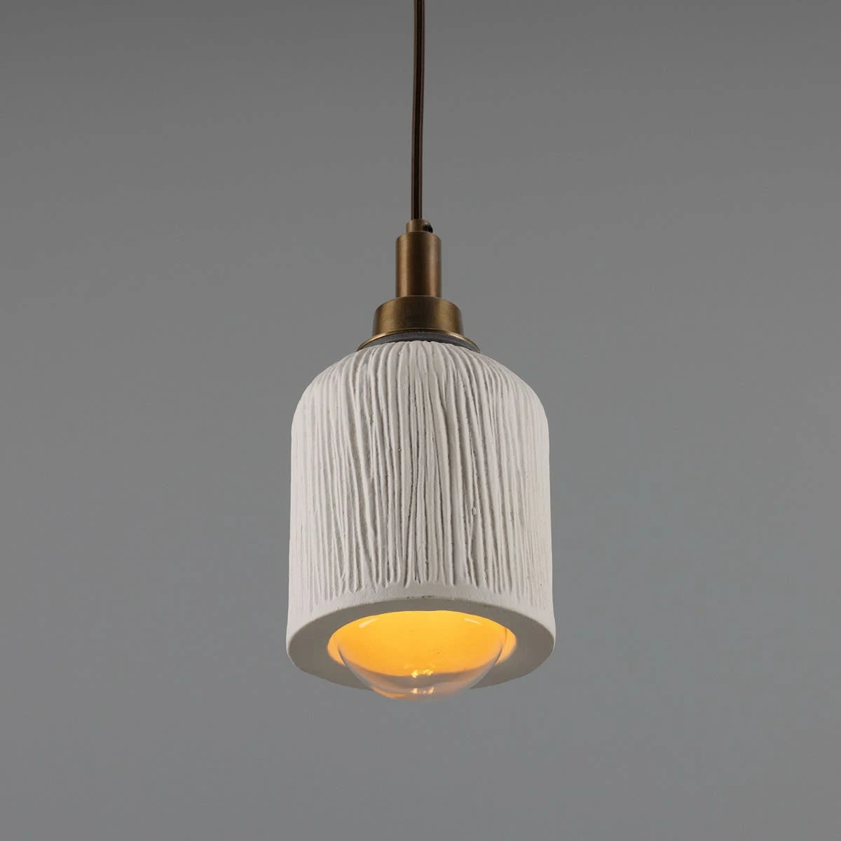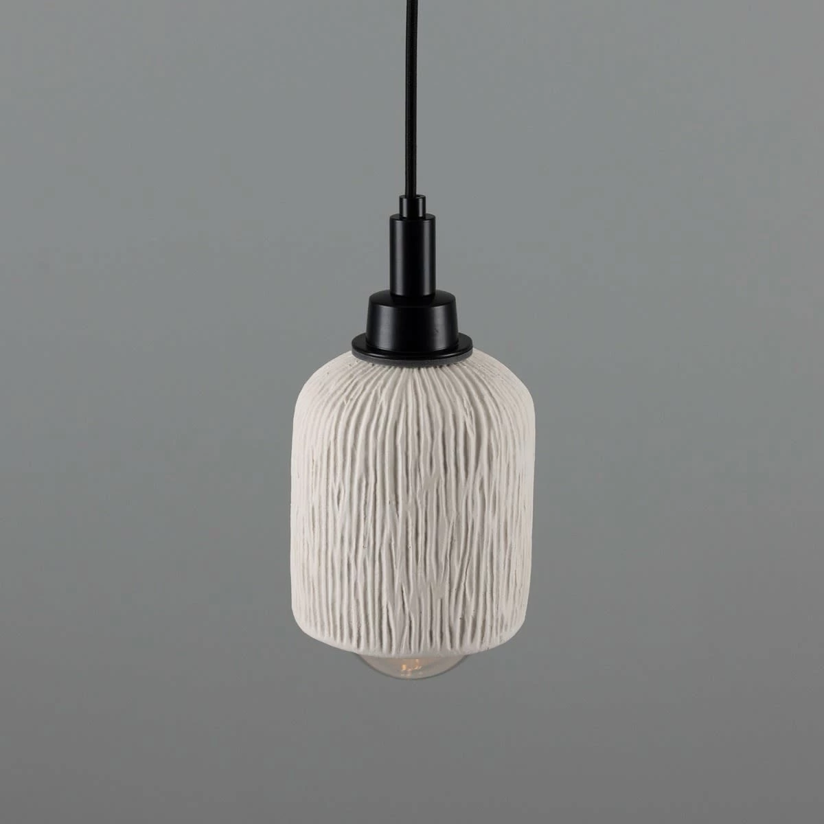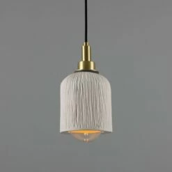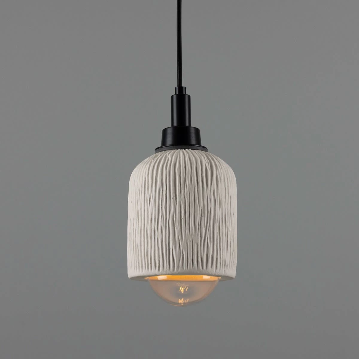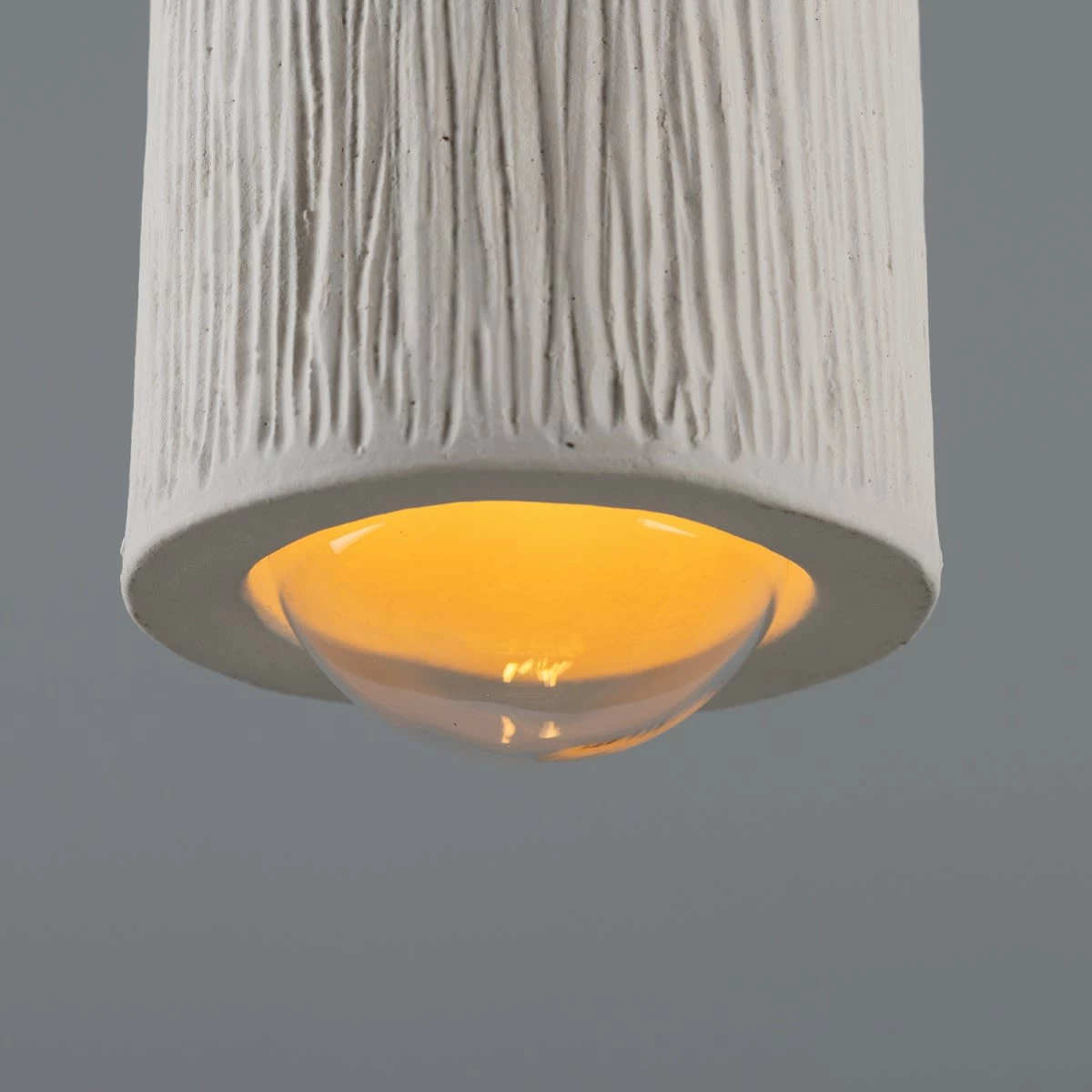 The Osier ceramic pendant has a refreshing design with a curved cylinder shape that adds a touch of sophistication to interiors. The matte white striped finish elevates this simple design, adding interest with its hand carved texture. The handcrafted nature of this ceramic pendant makes each light fixture unique.