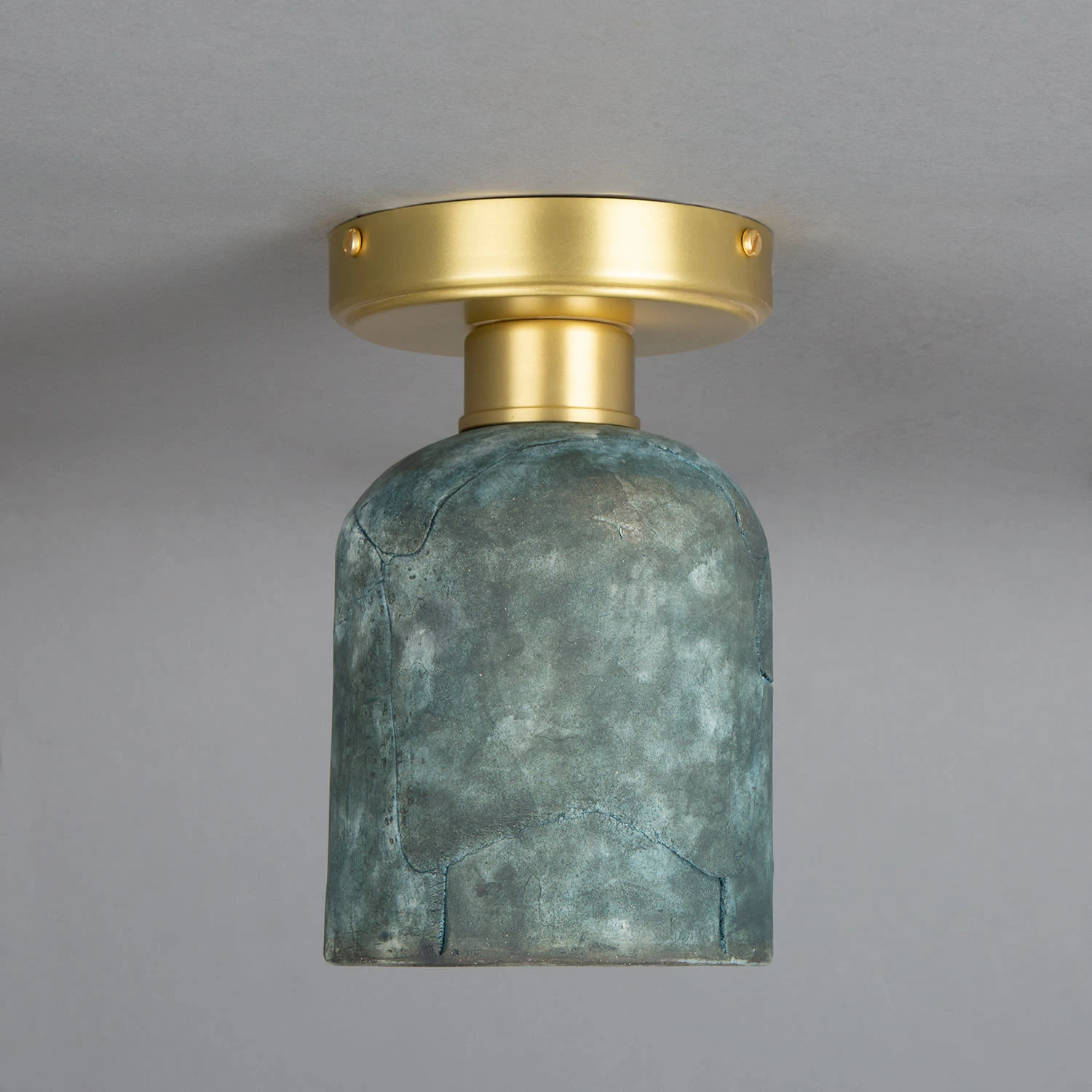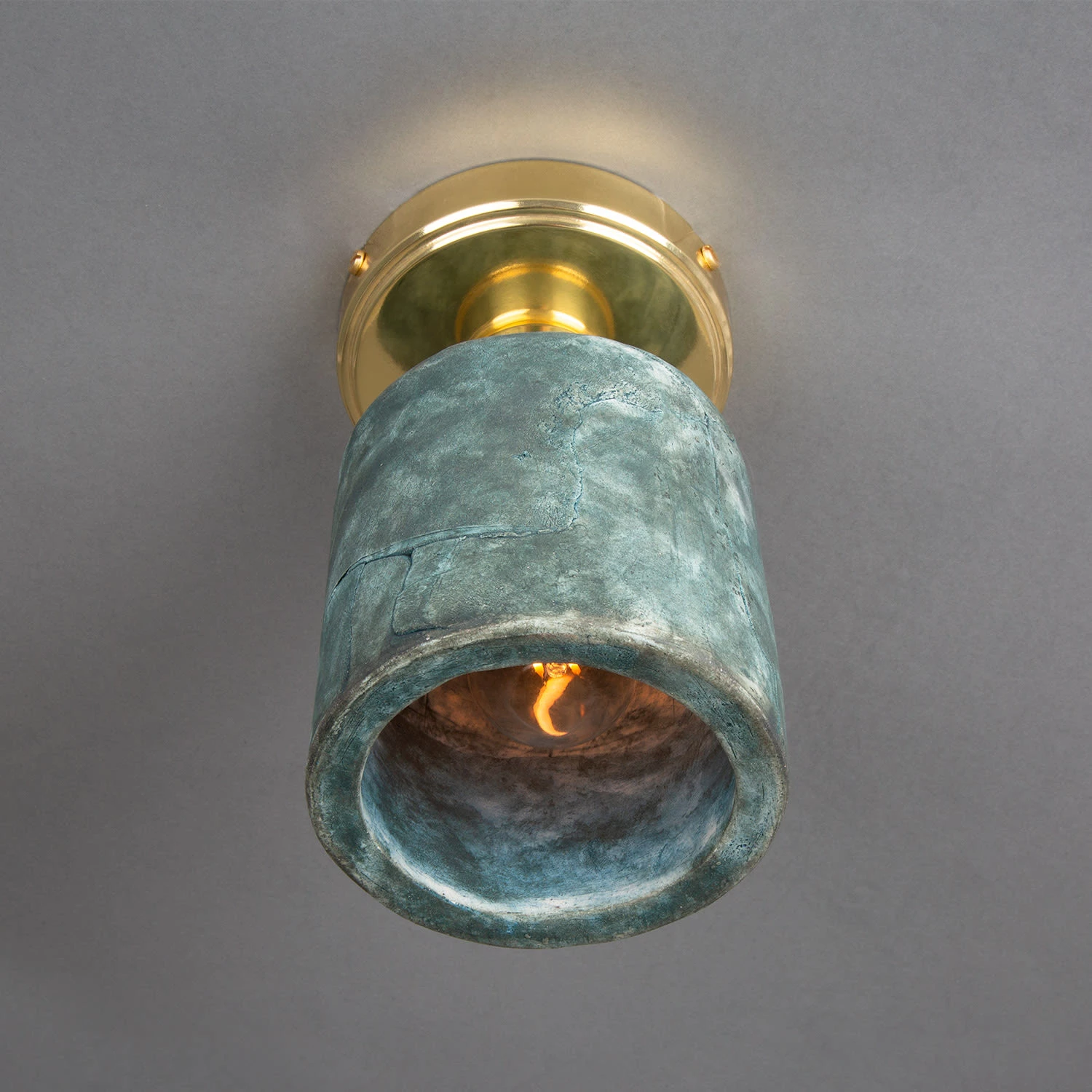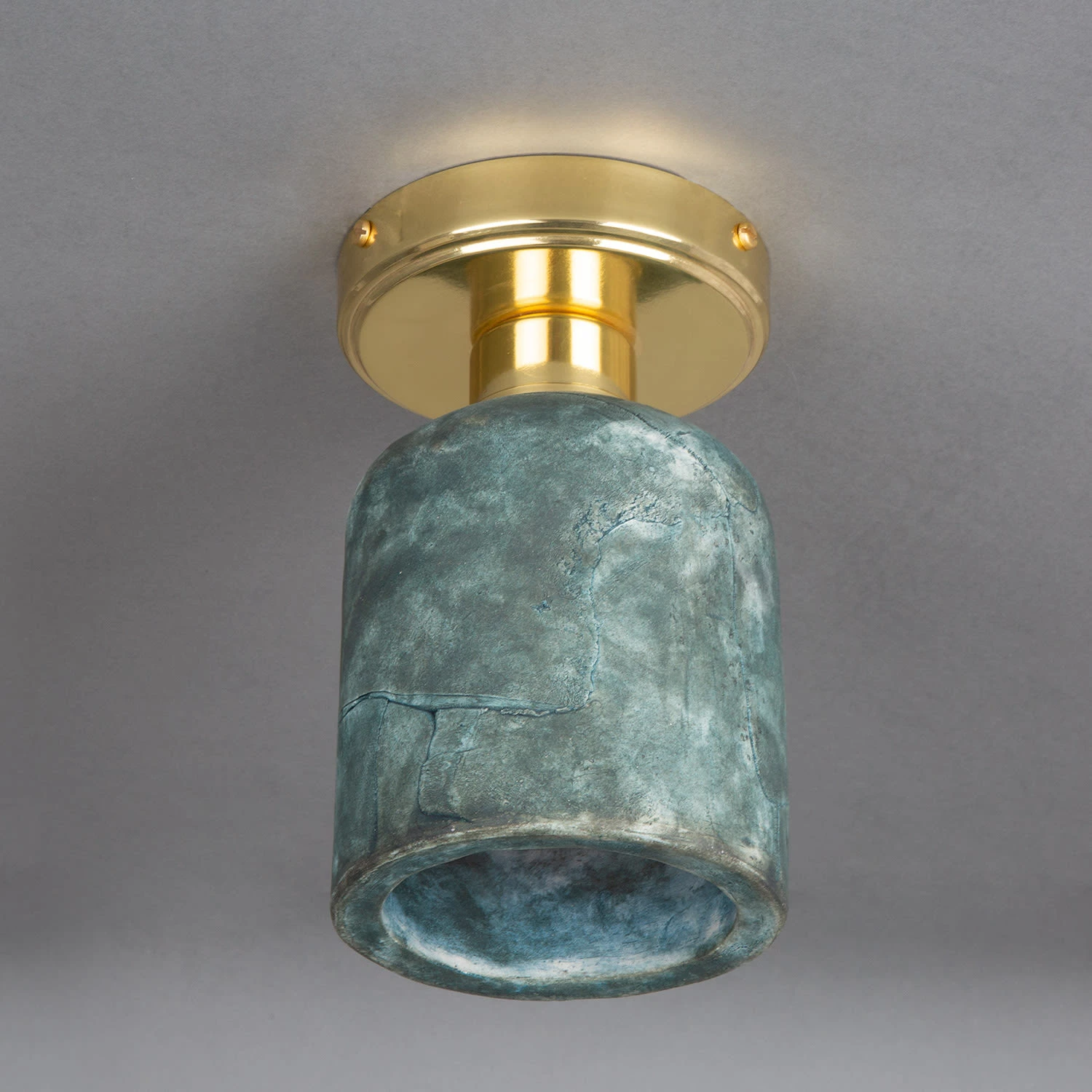 Standing at 25cm in height and 12cm in diameter, the Osier ceramic flush fixture is supported by a brass circular ceiling rose. This ceiling rose is customisable in terms of colour finish. It can be ordered in antique brass, antique silver, polished brass, satin brass and powder-coated matte black.