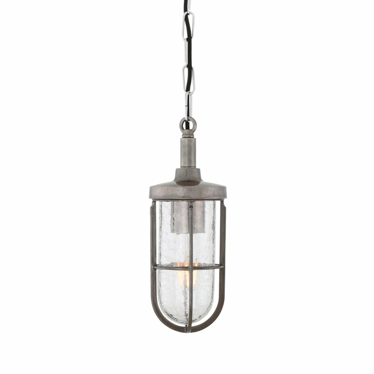 The Owel A pendant is a nautical bathroom pendant with a distinctive marine-style well glass shade. This glass shade can be ordered as clear, crackled or frosted.