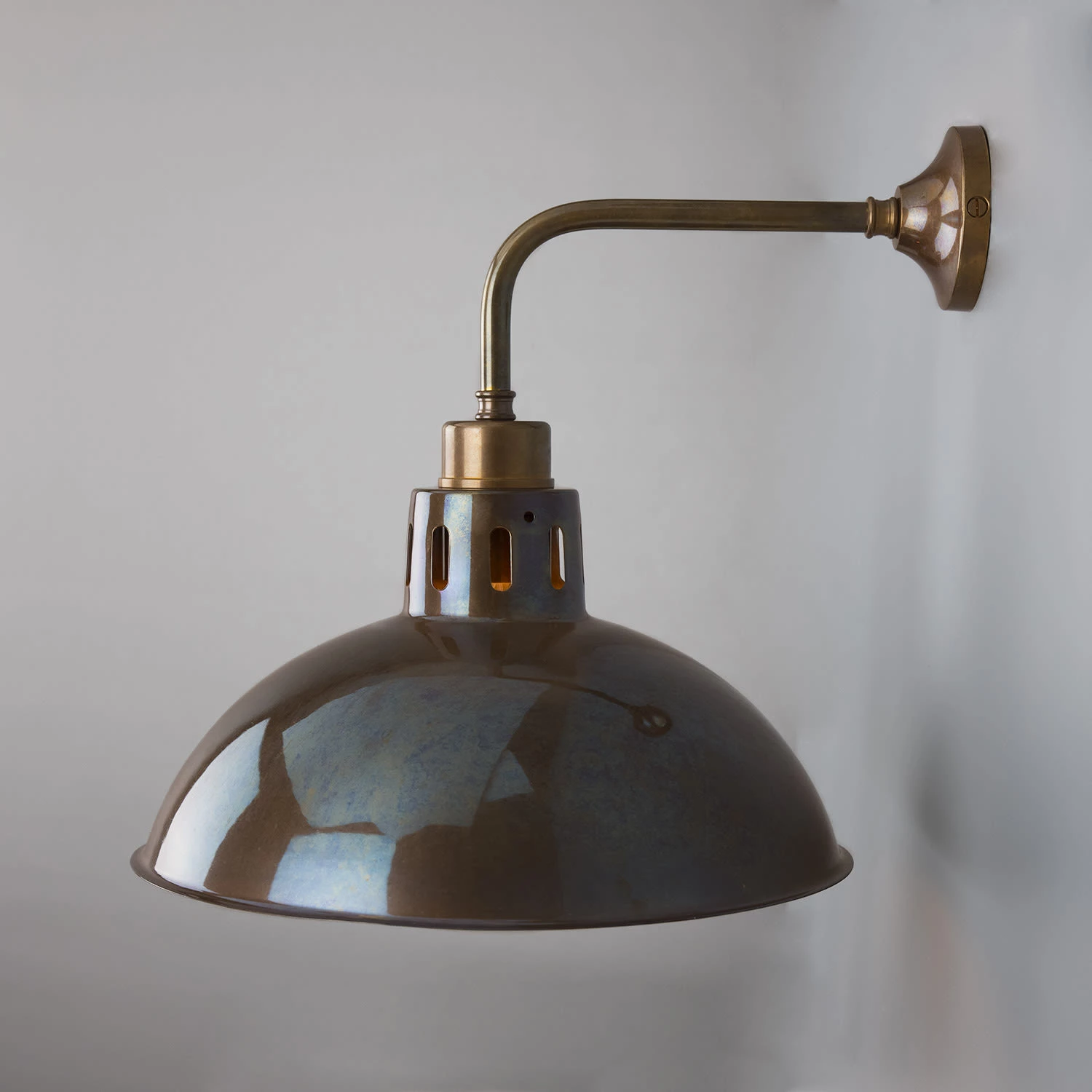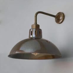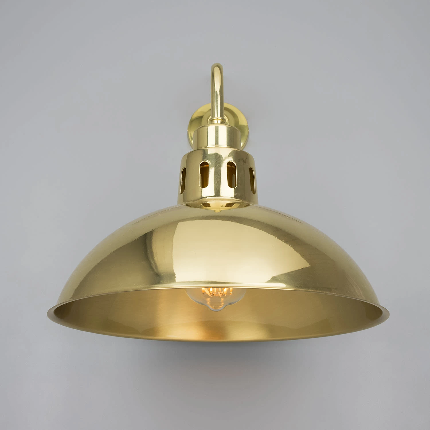 The Paris wall light is an industrial wall light with a vintage-style dome-shaped brass shade. The vintage shade is attached to an elegant L-shaped arm that is in turn securely fastened to a matching wall bracket.