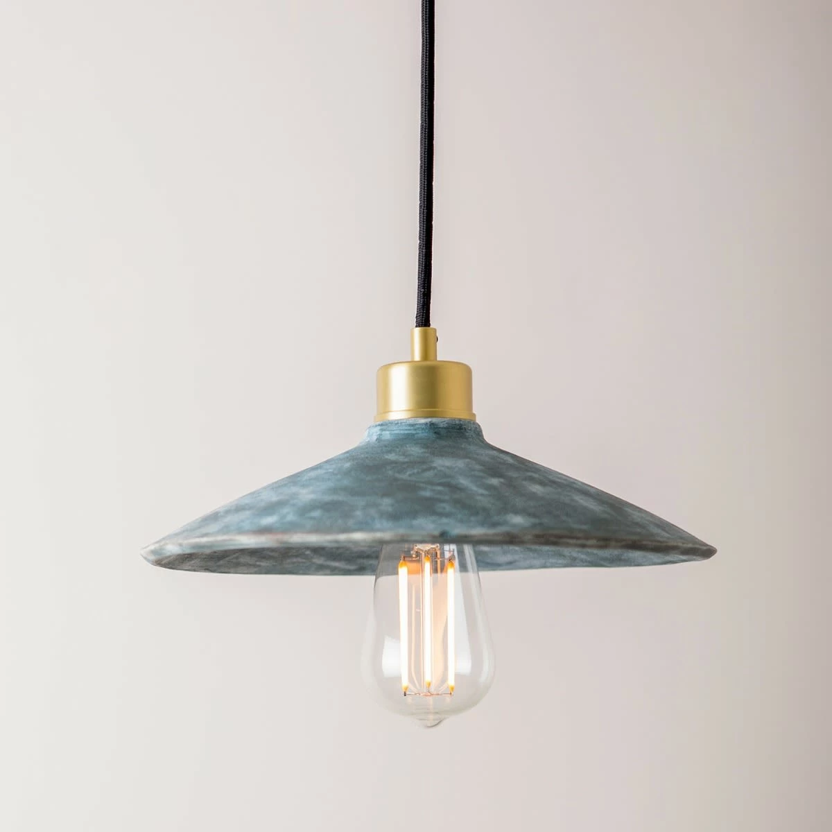 This rustic pendant hosts a matching brass ceiling rose attached with decorative fabric cable and brass lamp holder. Adjusting to an array of interior settings, the brass lamp holder has five colour finish options: antique brass, antique silver, polished brass, satin brass and polished copper.