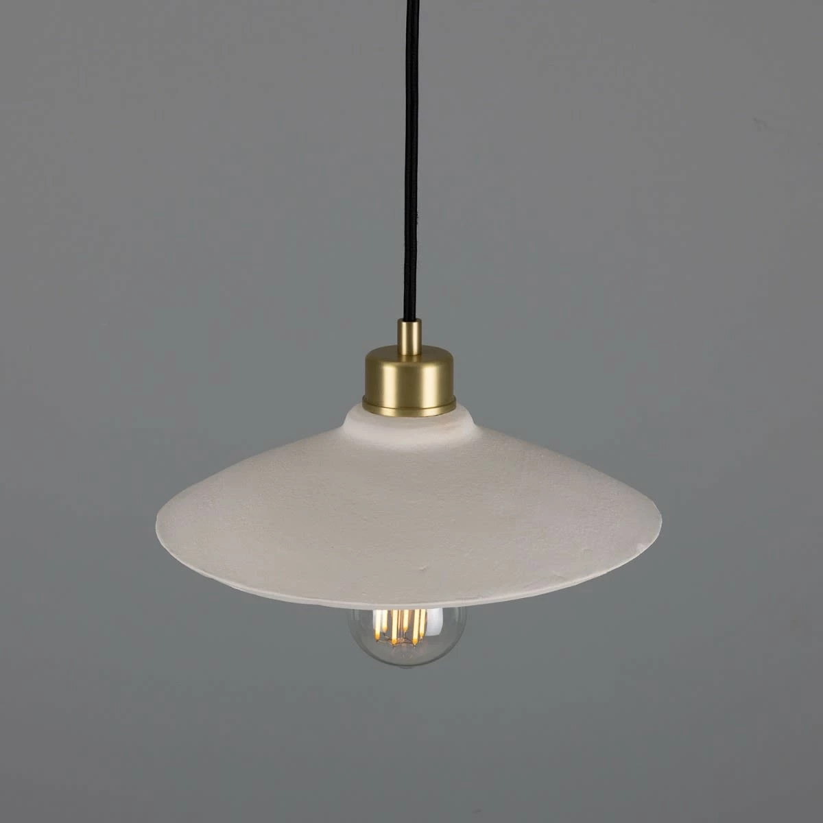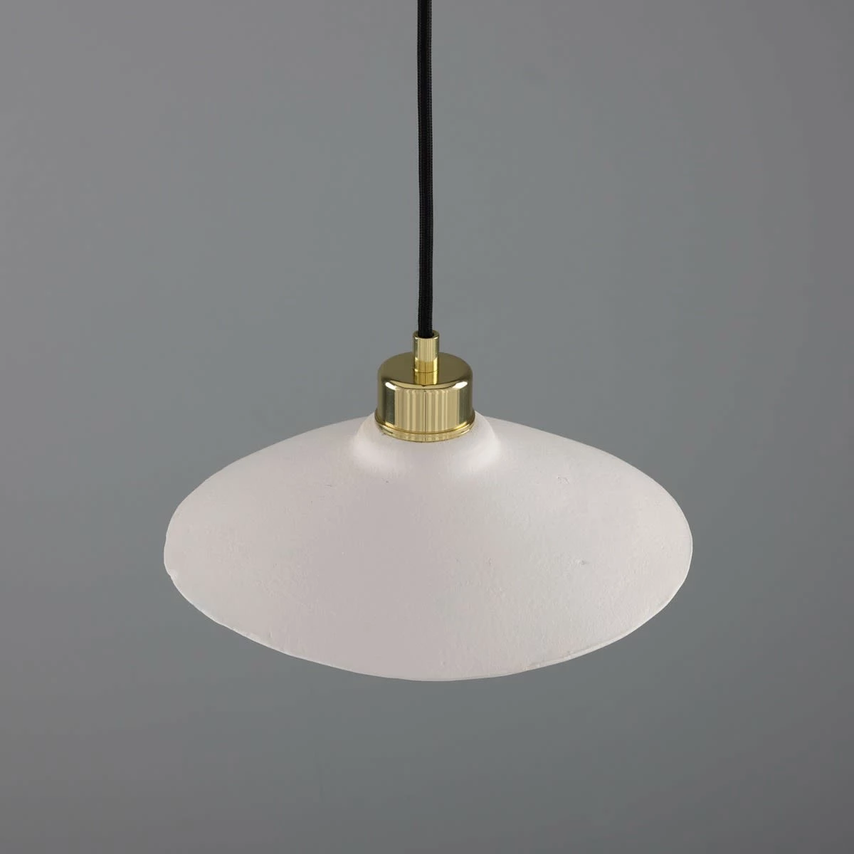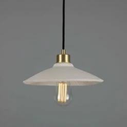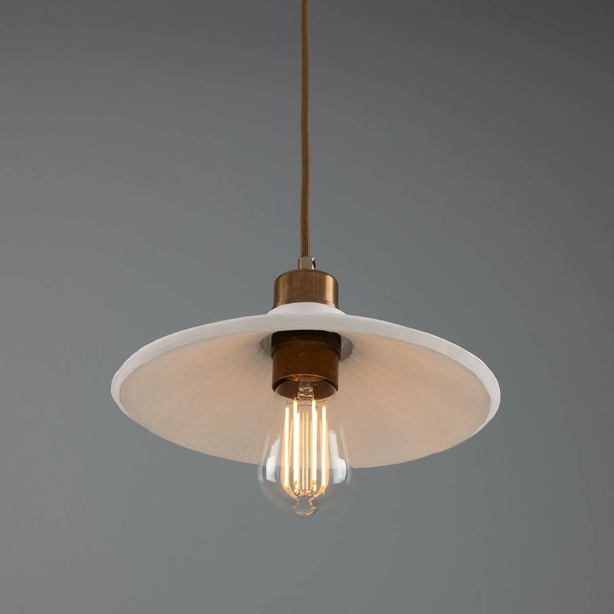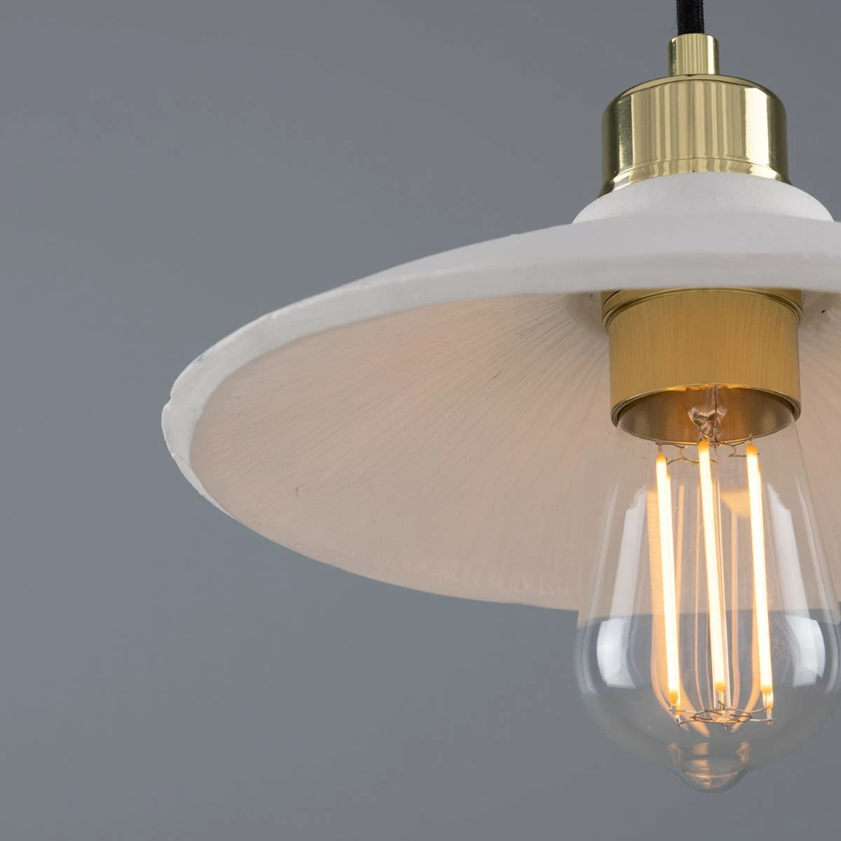 This ceramic pendant includes a matching brass ceiling rose with decorative cable that grips a brass lamp holder. Adapting to a variety of interiors, the brass components are available in five colour finishes; antique brass, antique silver, polished brass, satin brass and powder-coated matte black.