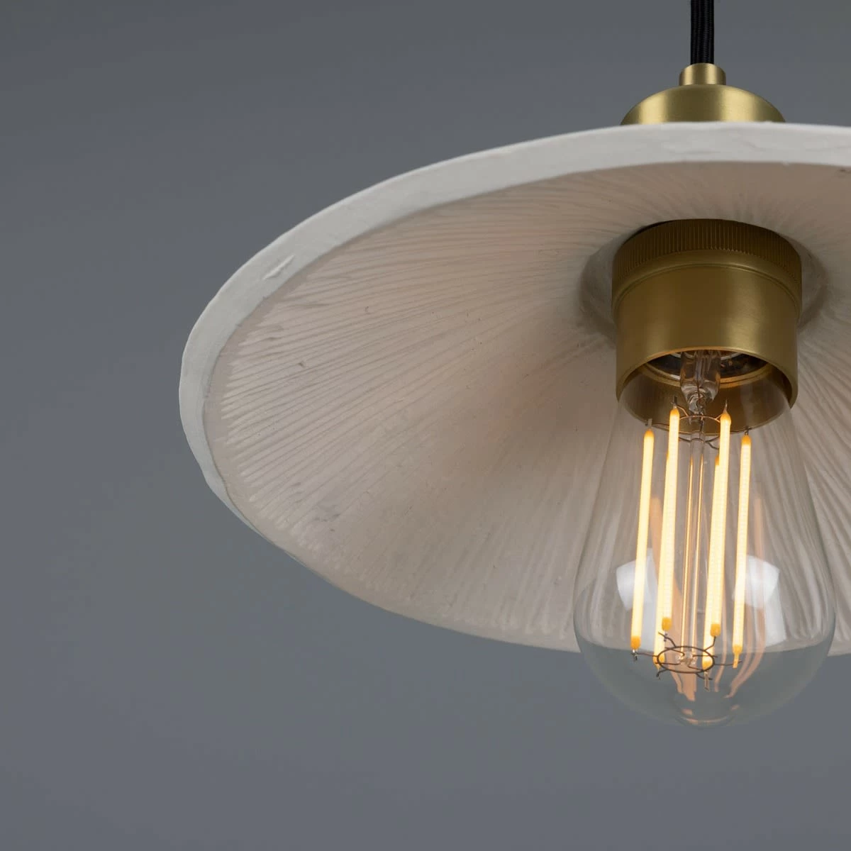 The matte white finish gives the Pyrus ceramic pendant a refreshing and clean appearance, while the hand carved shade inner adds texture to interiors and showcases the mindful efforts of our in-house ceramicists.