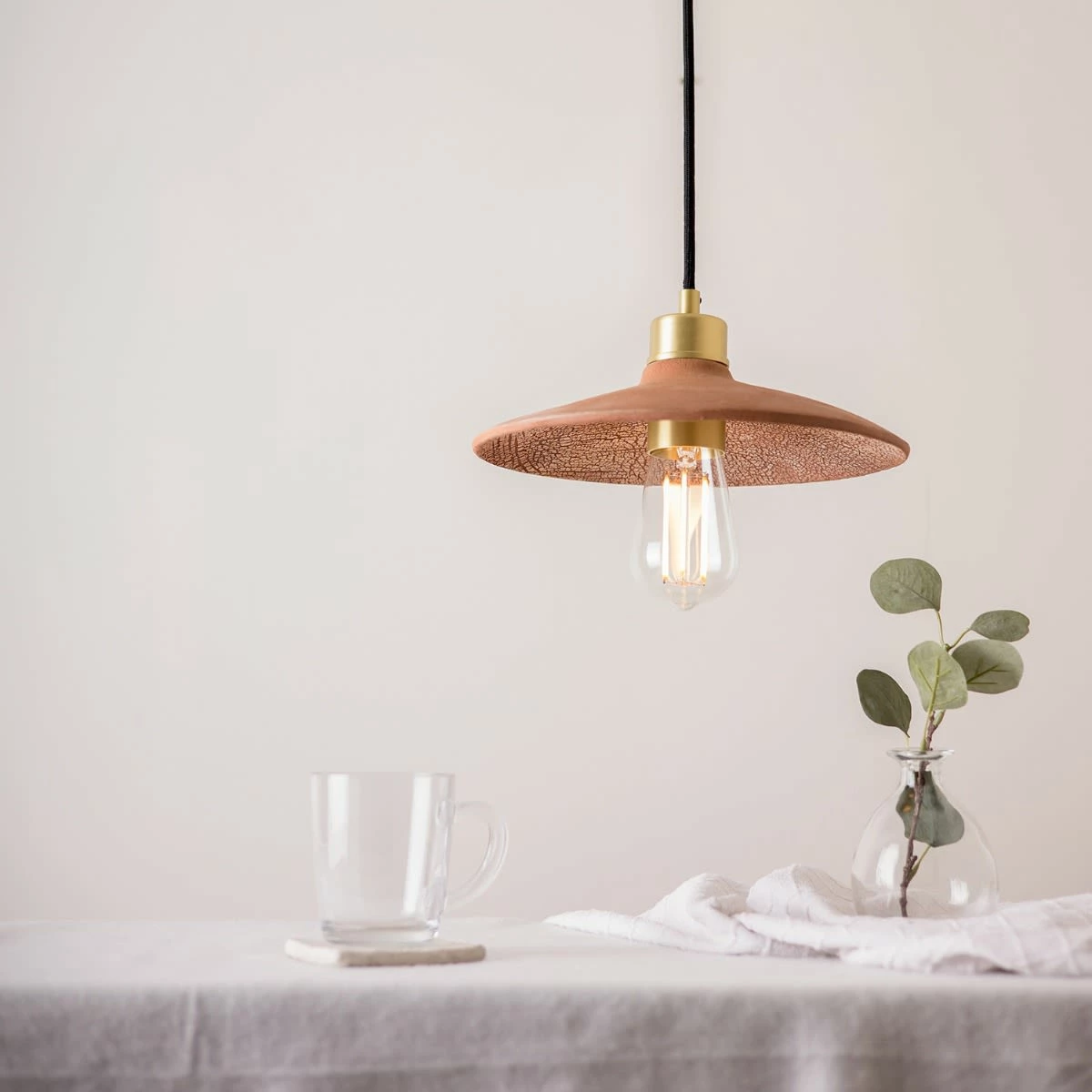The Red Iron colour finish is a mixture of terracotta and rust tones. With an inviting warm essence, this rustic ceramic pendant light can be used across an array of interiors.