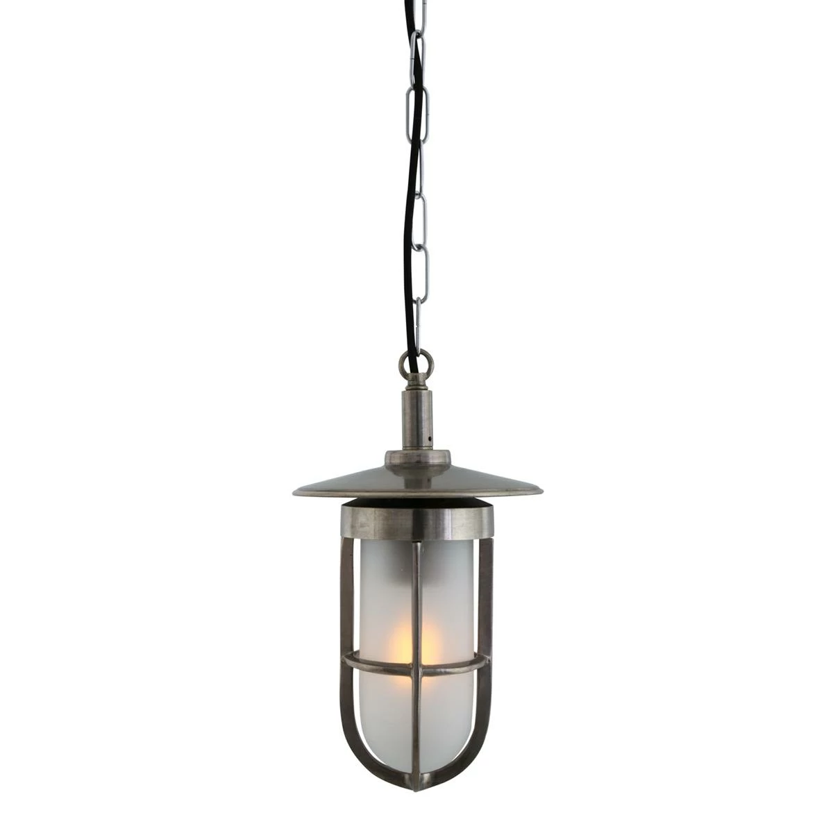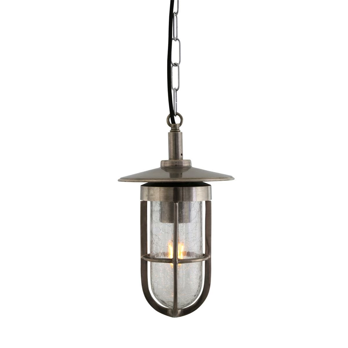 The Ramor is a nautical pendant light with a distinctive well glass lamp shade and enclosing, protective brass cage. It is rated IP65 and can be safely installed in most outdoor and bathroom locations.