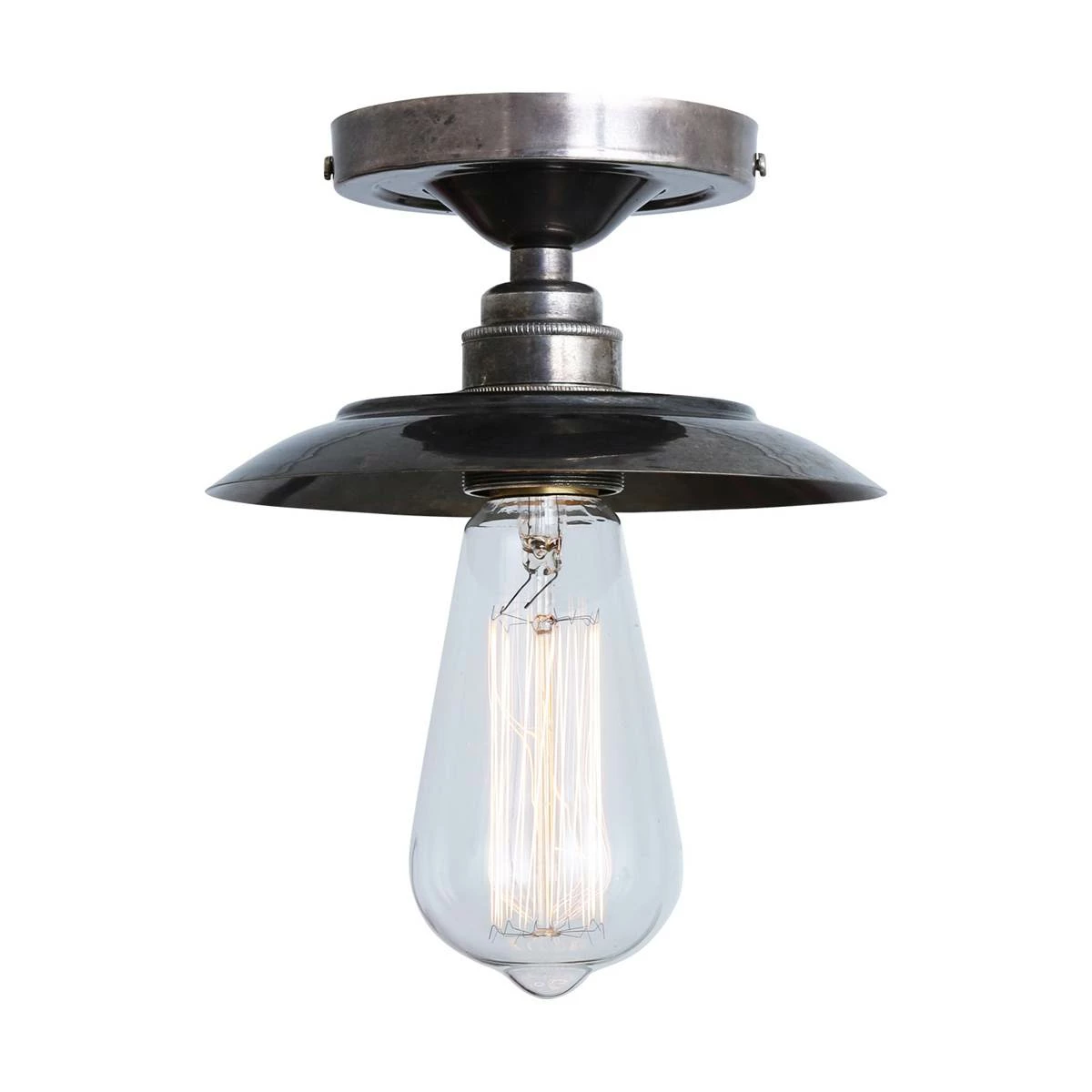 A striking addition for any room, the Reznor Flush Ceiling Fitting offers sophisticated style and plenty of illumination. Dramatic lighting for lower ceilings and smaller spaces, this flush ceiling light adds elegant shimmer to an entryway or powder room. Designed to showcase the warmth of Edison-style filament bulbs, this flush ceiling light brings a understated beauty to any space. A versatile design that will engage your eye with its clean lines and vintage flair. Suitable for any minimalist or industrial interiors, this industrial ceiling light looks great when teamed with an Edison-style filament bulb to enhance an industrial atmosphere. Bulbs are sold separately.