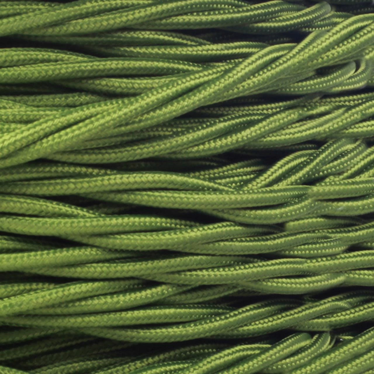 2 Core Green Braided lighting cable. This coloured lighting cable is ideal for decorative lighting. This woven silk fabric flex can cut the cable to any required length. The braided cable looks well in historic lighting and traditional lighting fixtures.