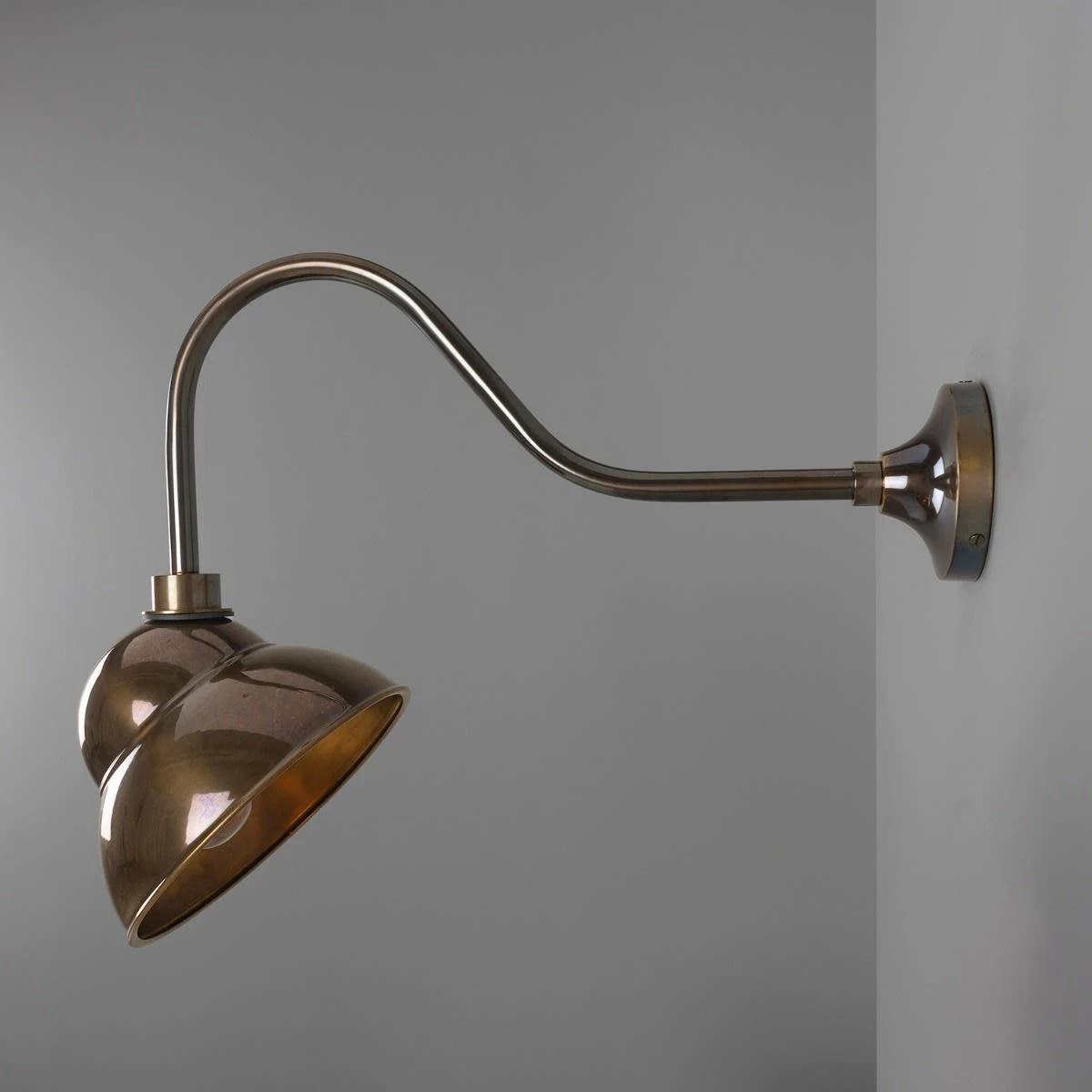 The Sanford is a vintage outdoor sign light that features a distinctive swan neck arm and vintage-style shade that reflects light onto the wall below. This vintage sign light is ideal for illuminating signs, banners and awnings.